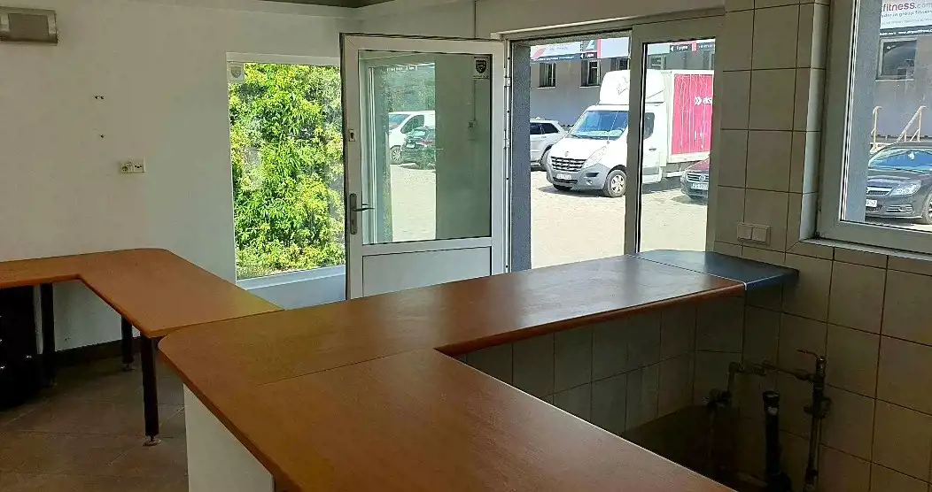 Biuro : wyposażone jest w kontuar- do obsługi klientów i biurka do pracy dla załogi .