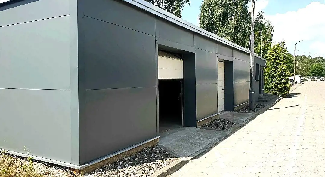 Bramy wjazdowe - do magazynu są nowoczesne , automatyczne . Drzwi wejściowe są nowe plastikowe, podwójne .