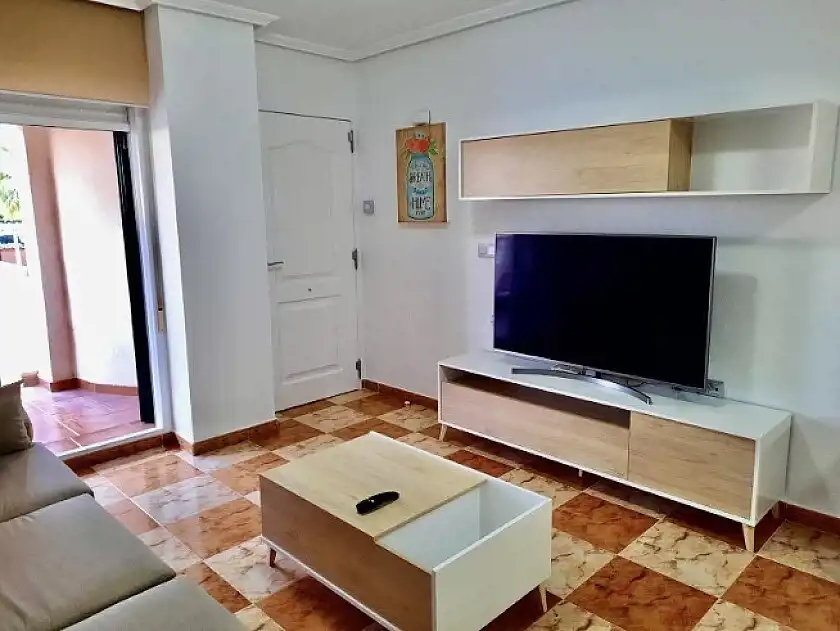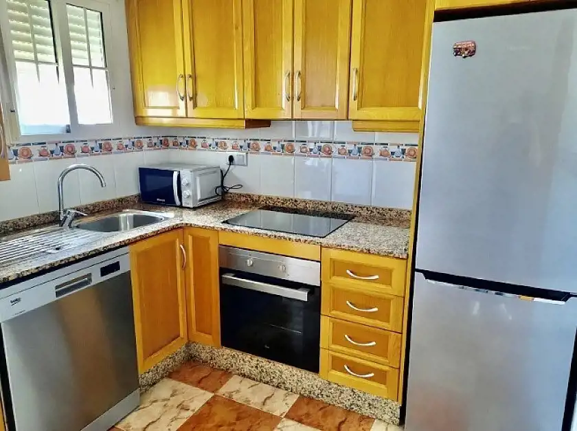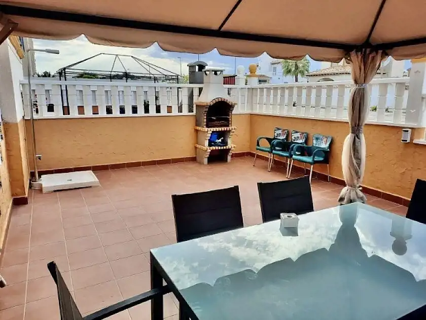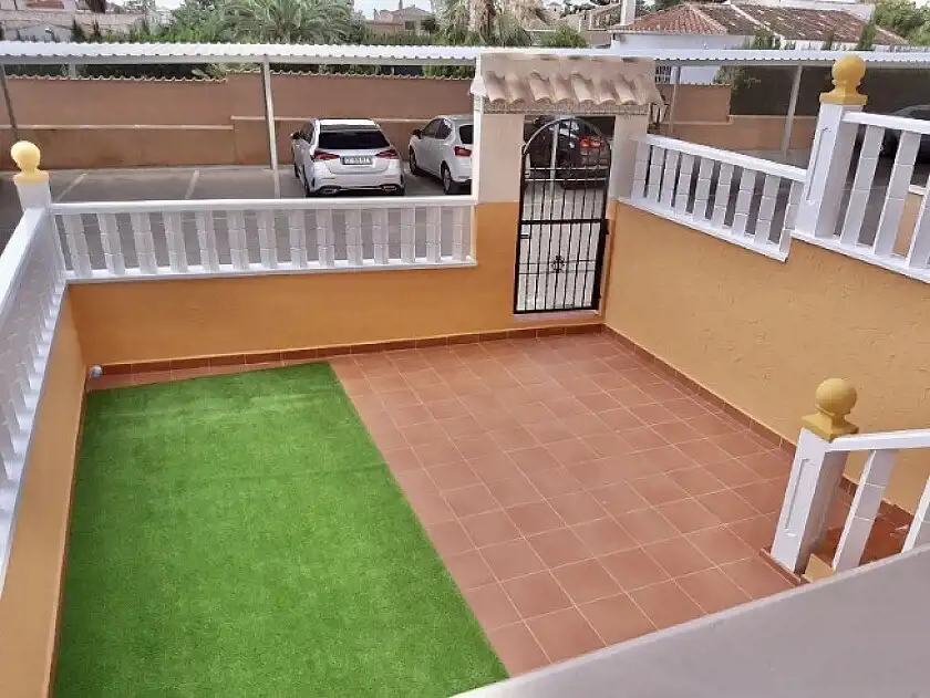 Apartament z dwiema sypialniami i jedną łazienką, dużym ogrodem z przodu i tarasem z tyłu. Dom z wystawą południowo-wschodnią jest sprzedawany w pełni umeblowany i wyposażony oraz jest w idealnym stanie. Dom położony jest kilka minut jazdy samochodem od wszystkich usług, kilku pól golfowych i plaż Orihuela. Urbanizacja cieszy się wspólnym basenem i terenami zielonymi.
