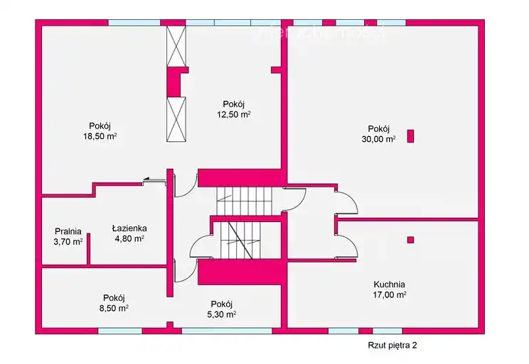 2 pół piętro: sypialnia z garderobą, 2 pokoje, łazienka
