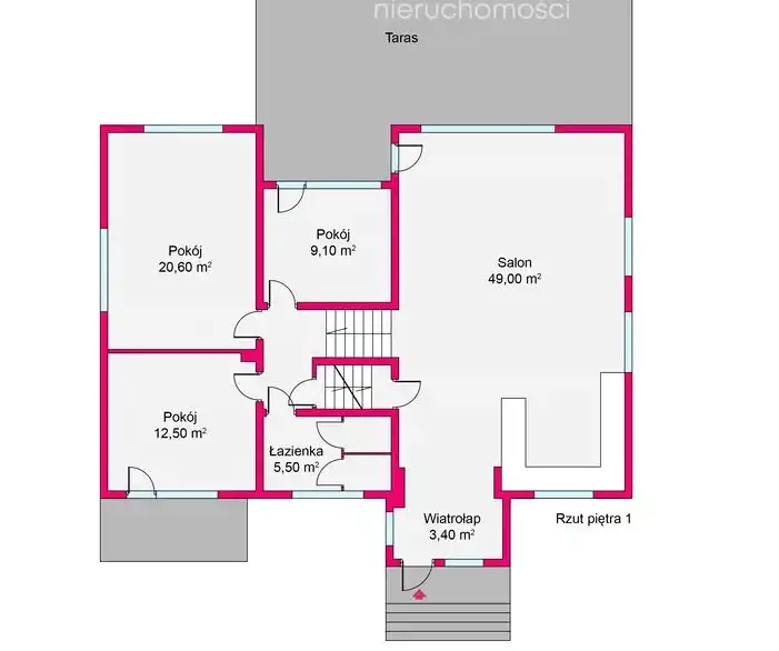 Parter: salon (ok. 60m2), taras, ogród zimowy