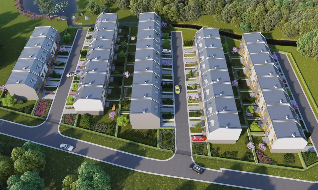 Osiedle zostało wybudowane w 2025 r. Znajduje się tam kilka budynków jednorodzinnych w zabudowie szeregowej. Technologia budowlana wysokiej jakości, ogrzewanie podłogowe na każdej kondygnacji!