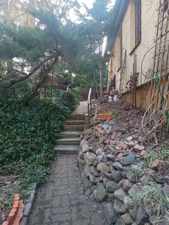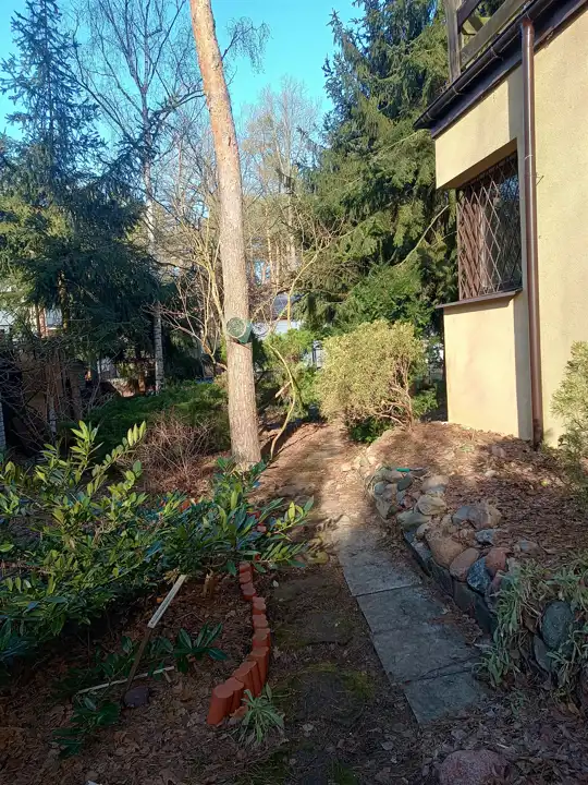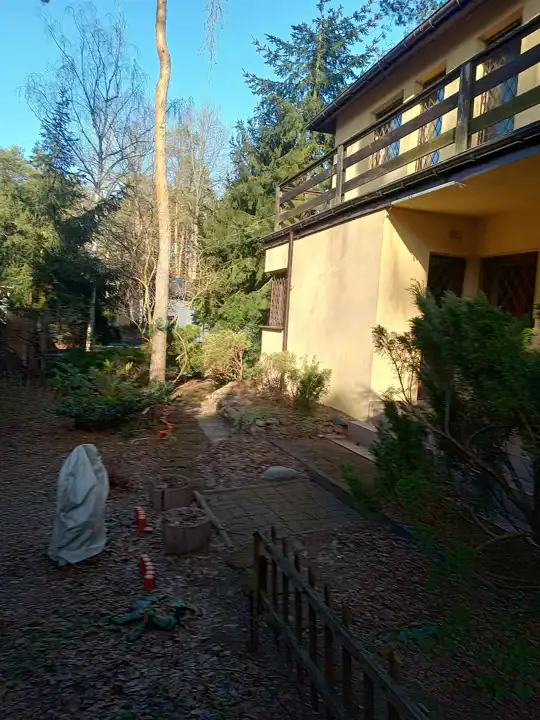 Na uwagę zasługuje leśny charakter działki, z drzewami i krzewami iglastymi, liściastymi i dużą ilością zieleni, a także różnica poziomów nadająca wyjątkowego charakteru tej nieruchomości.