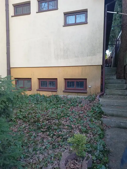 Poniżej parteru znajduje się hol(9,2m2), 2 pokoje:(17,5m2) i (14,9m2) i łazienka(8,8m2) z wanną i natryskiem. Z jednego z pokoi jest wyjście na taras od strony zachodniej.
