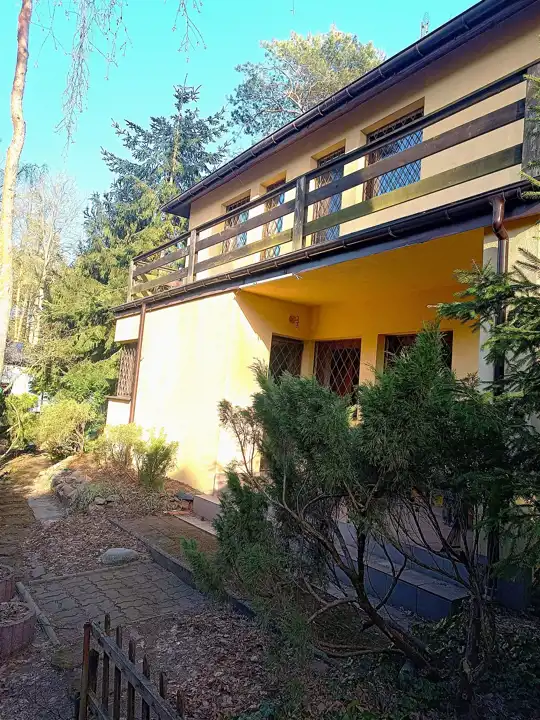 Ten klimatyczny dom wybudowany został na podstawie indywidualnego projektu wykonanego przez architekt Marię Zamoyską. Dyspozycja przestrzenna budynku wynika z orientacji działki,różnicy poziomów terenu i usytuowania drzew.