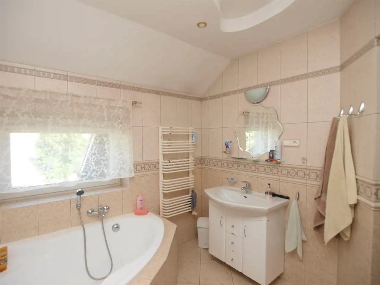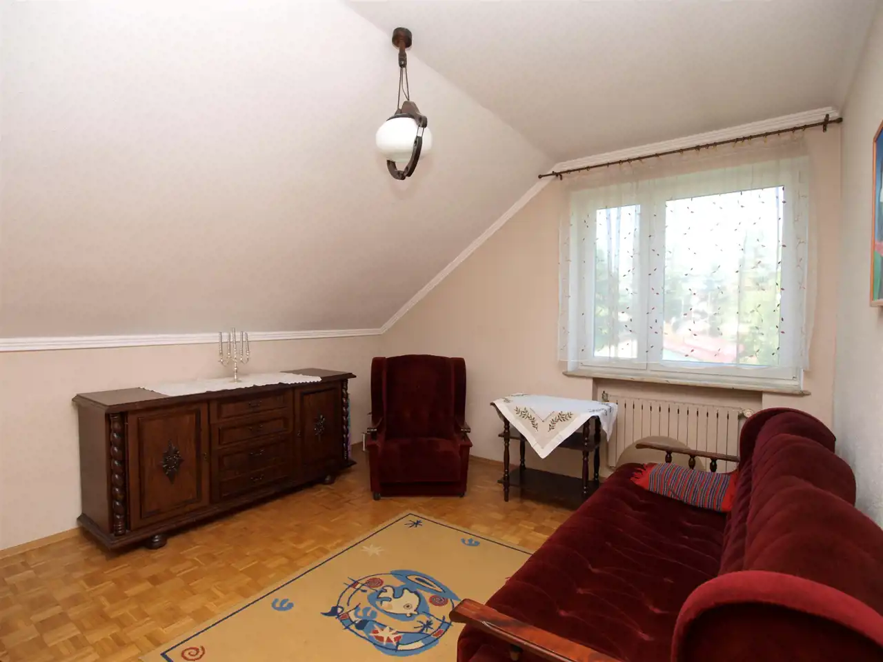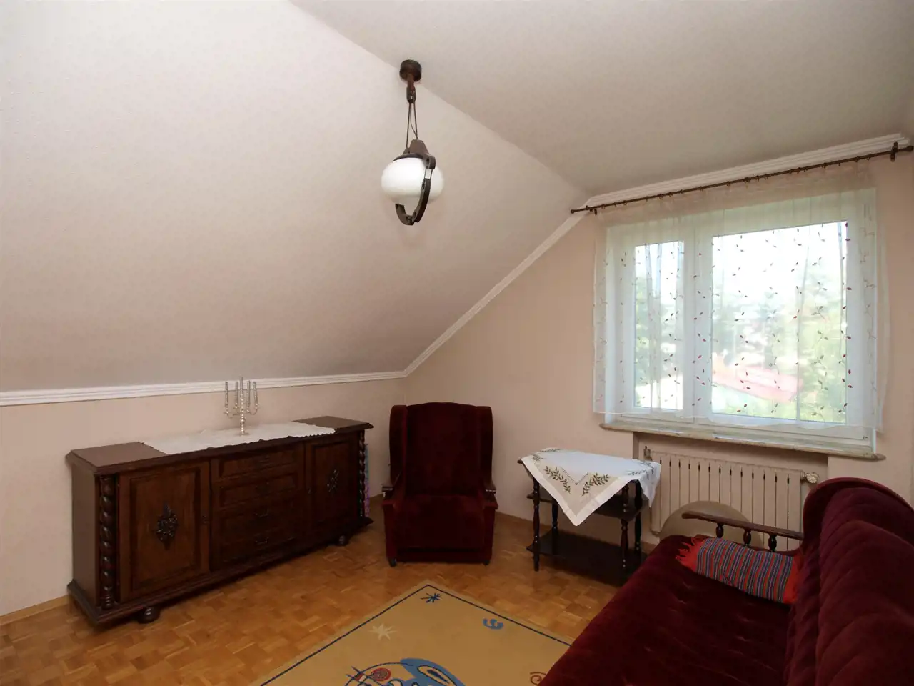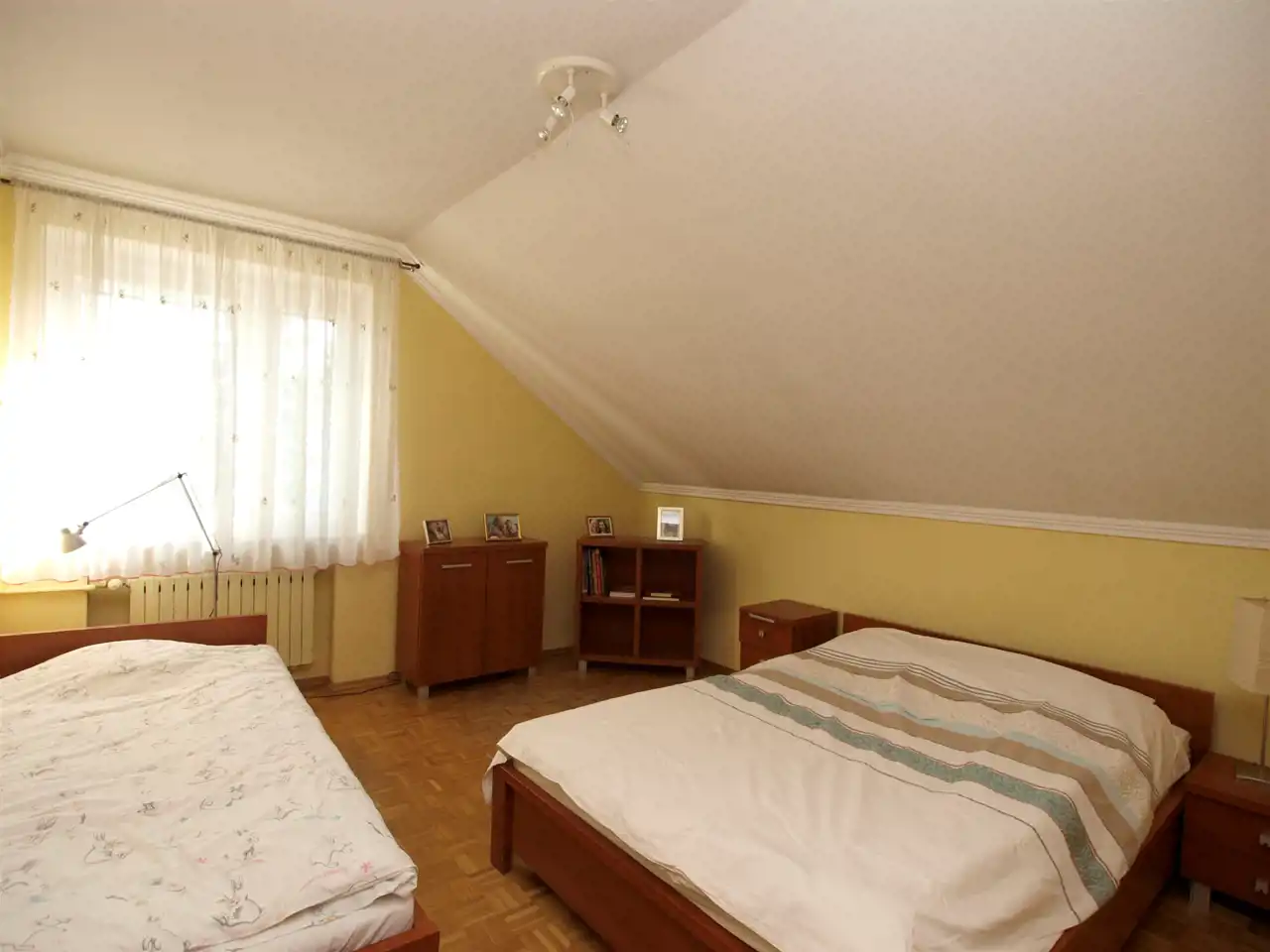 Do sprzedaży dwie części bliźniaka. Powierzchnia 320m. Na poziomie 1 kuchnia z jadalnią, duży salon z wydzieloną częścią wypoczynkową z kominkiem oraz łazienka. Na poziomie drugim 7 pokoi, dwie łazienki, dwie garderoby. Na poziom drugi prowadzą bardzo wygodne, szerokie schody. Z tyłu domu taras i zagospodarowany ogród.