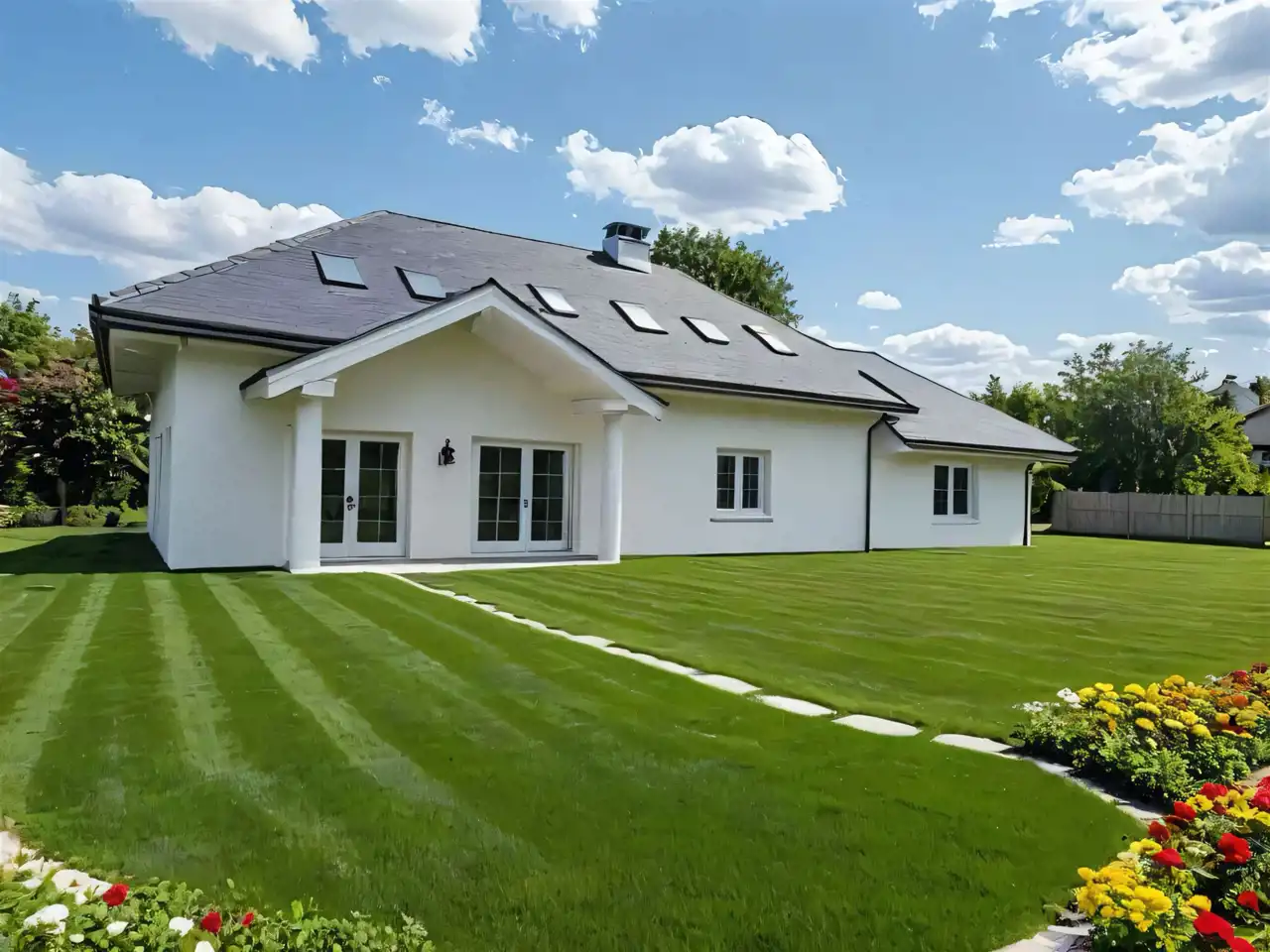 - Działka: Ogromna działka o powierzchni 3000 m² (30 arów), oferująca pełną prywatność, starodrzew lub zaaranżowany ogród z automatycznym podlewaniem.