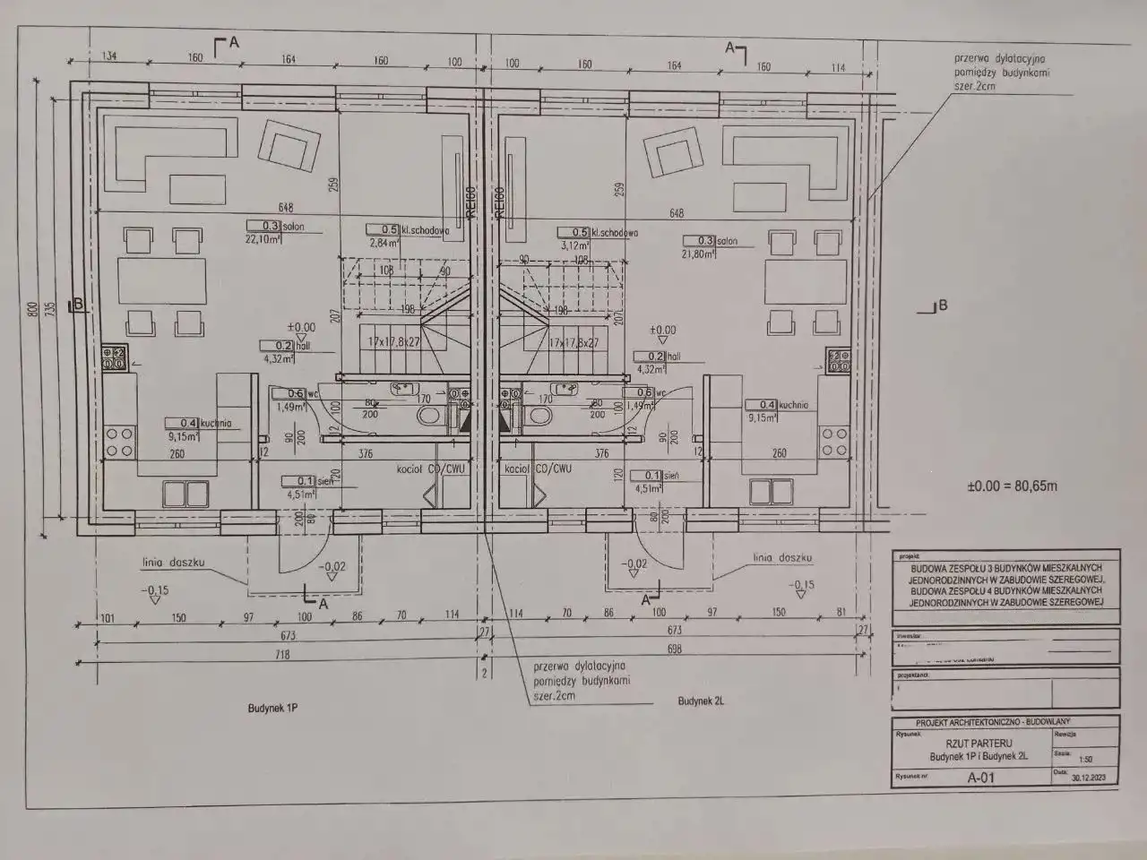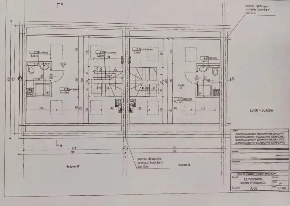Zespół 3 oraz 4 budynków w zabudowie szeregowej, o powierzchni użytkowej ok. 110 m2 każdy.