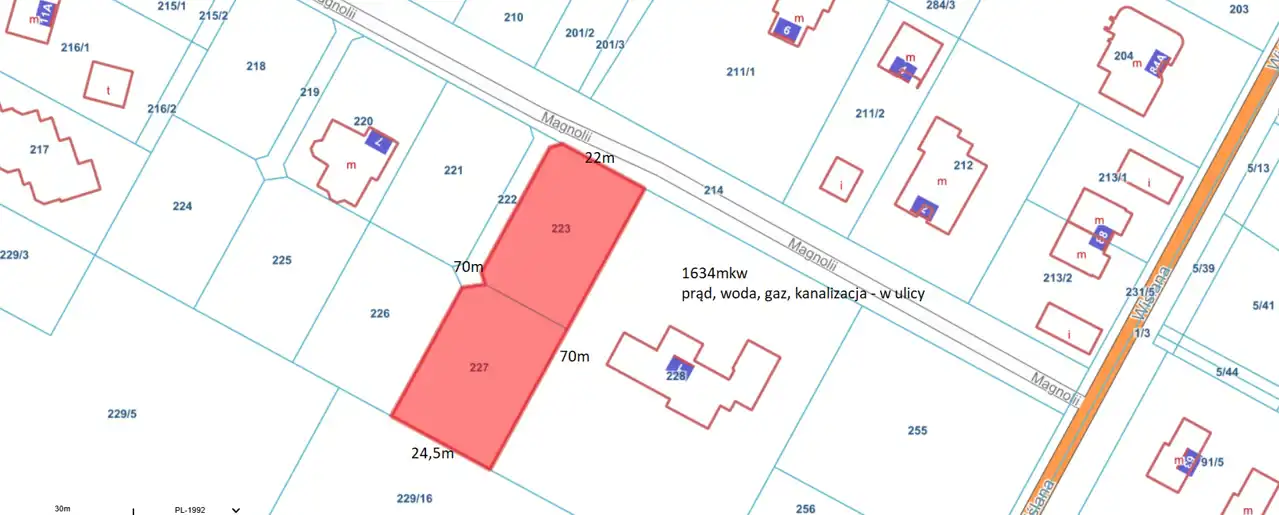 - Media Woda: w ulicy; Kanalizacja: w ulicy; Prąd: w ulicy; Gaz: w ulicy