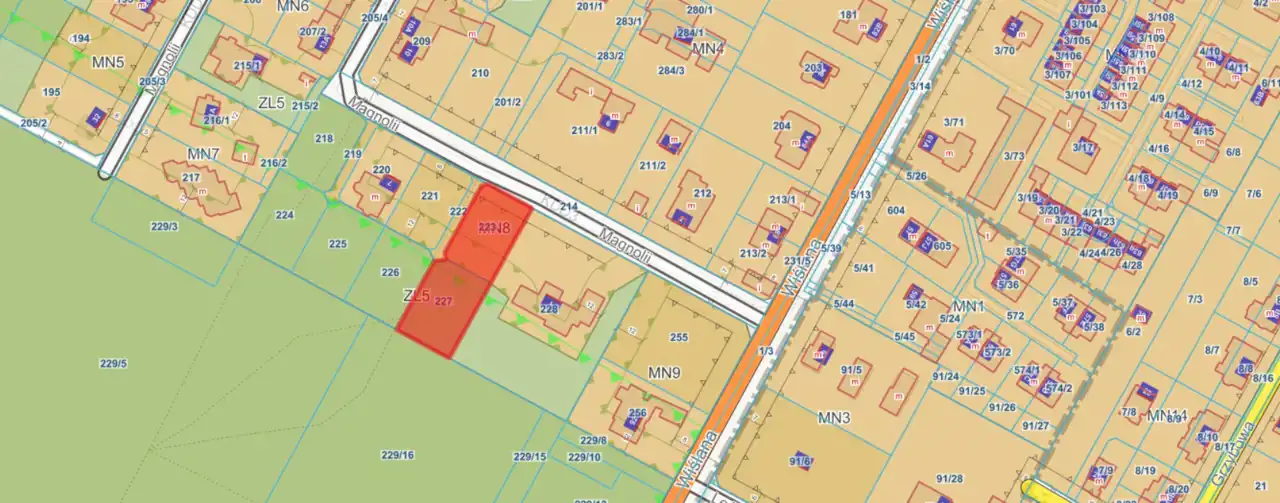 Teren jest objęty miejscowym planem zagospodarowania przestrzennego pod zabudowę mieszkaniową (działka 223 - 783m2) oraz pod teren leśny (działka 227 - 851m2).