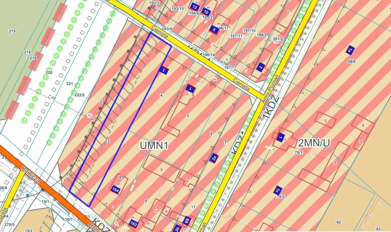 Mam do zaoferowania działkę budowlaną objętą Miejscowym Planem Zagospodarowania Przestrzennego, z symbolem UMN1 (teren zabudowy usługowej), główne parametry zabudowy: