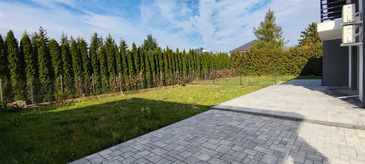 Brak niestety garażu , ale jest bardzo dużo miejsca na ternie działki by móc postawić garaż wolnostojący , bez znacznej utraty powierzchni ogrodu .