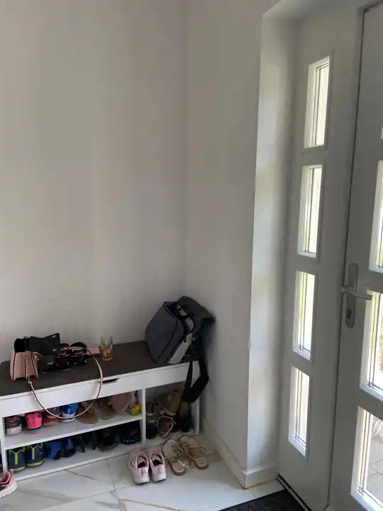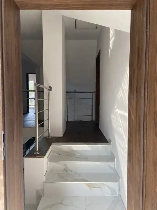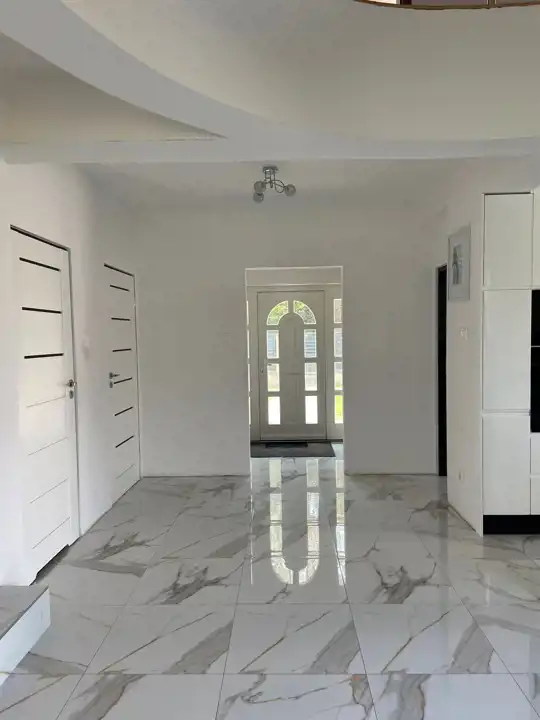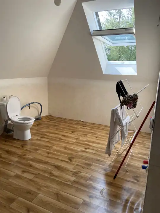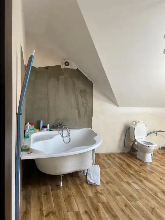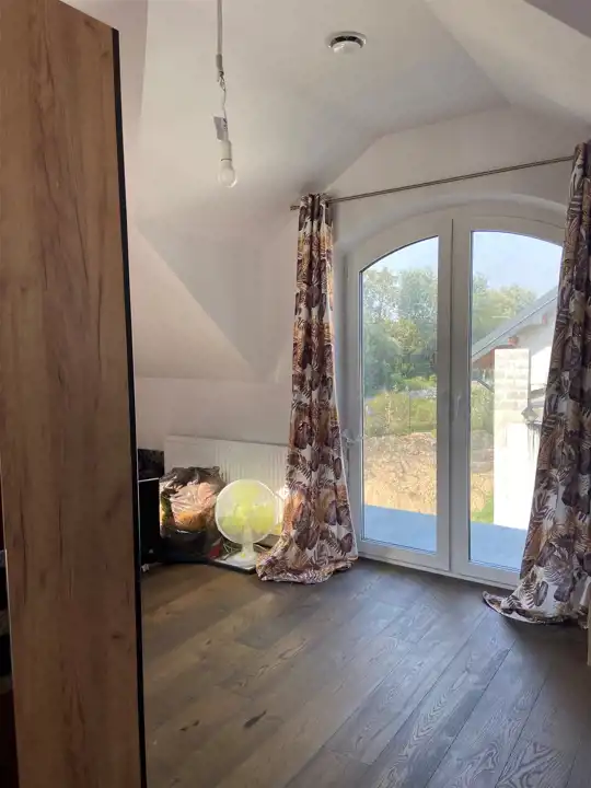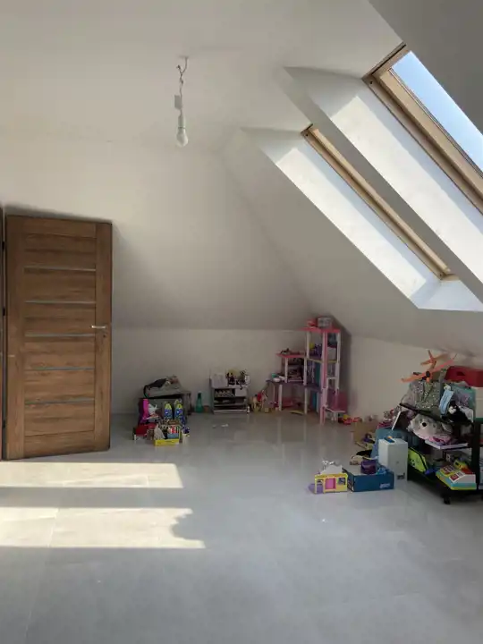 Wewnątrz do dokończenia została łazienka, montaż listew przypodłogowych w niektórych pomieszczeniach itp.,a na zewnątrz barierki na balkonach, wyłożenie tarasu wierzchnim materiałem,a także położenie kostki brukowej na wjeździe.