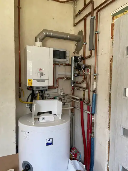 Oprócz ogrzewania gazowego jest także ogrzewanie kominkowe, z rozprowadzeniem ciepła na pozostałe pomieszczenia.