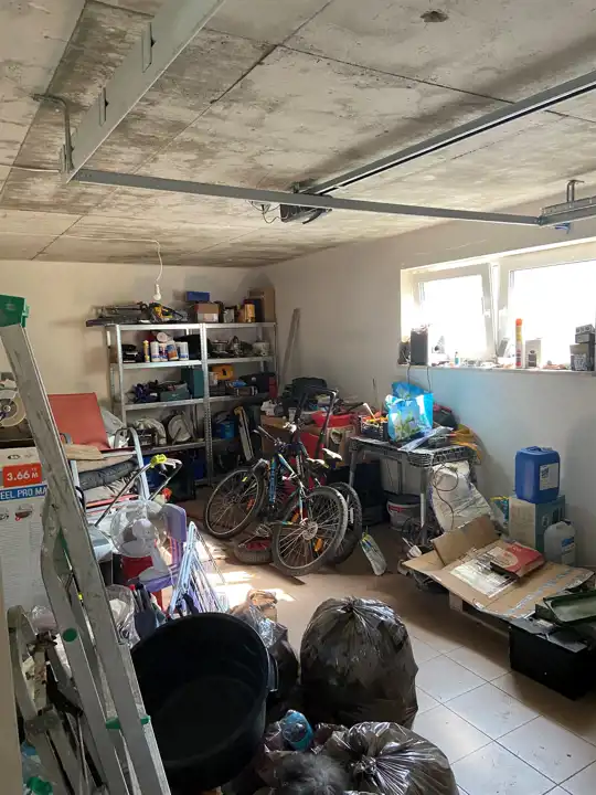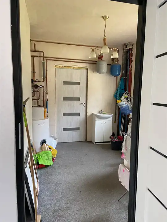 W bryle budynku jest też jednostanowiskowy garaż (doświetlony oknami i ogrzewany), do którego jest przejście z domu przez pomieszczenie kotłowni.