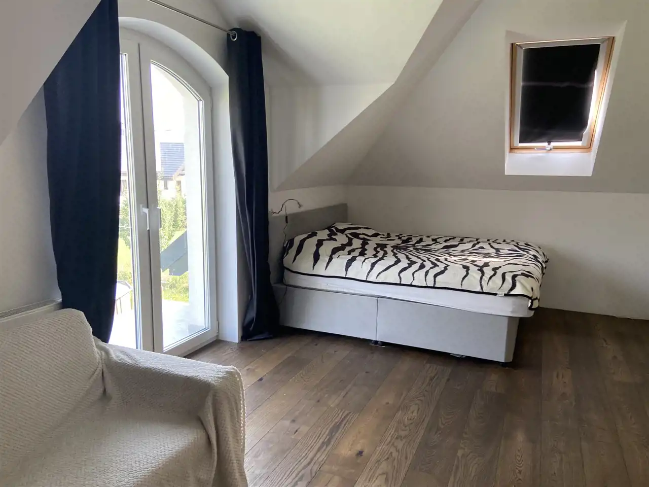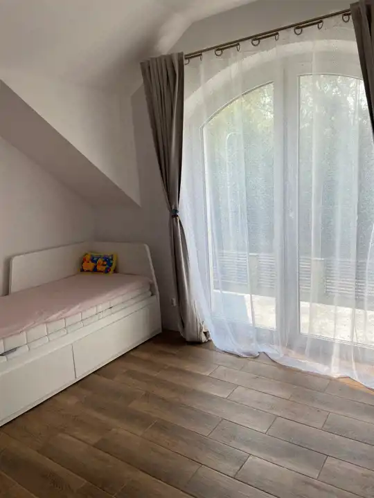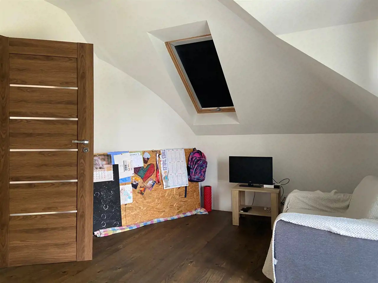 Na piętrze znajdują się 4 sypialnie i łazienka.