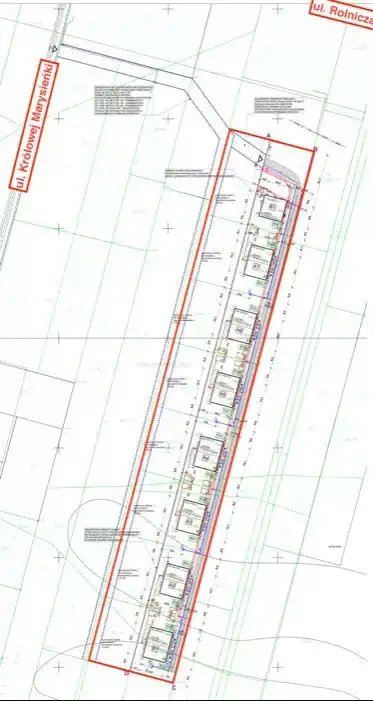 Działka z PNB, projekt osiedla na 7 budynków dwu-lokalowych i 1 dom wolnostojący, łącznie 15 lokali.