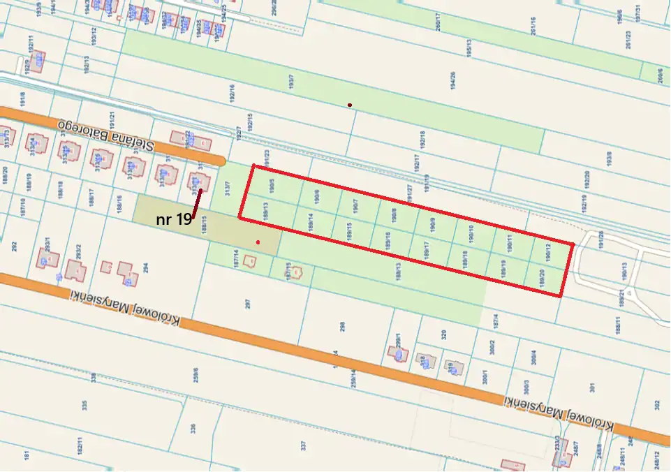 Działka w dogodnym kształcie prostokąta o wymiarach 25 x 360 m.