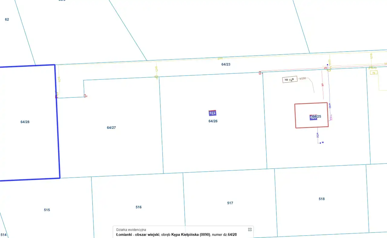 Część działki (ok. 215 m2) przeznaczona pod teren dróg publicznych klasy dojazdowej.