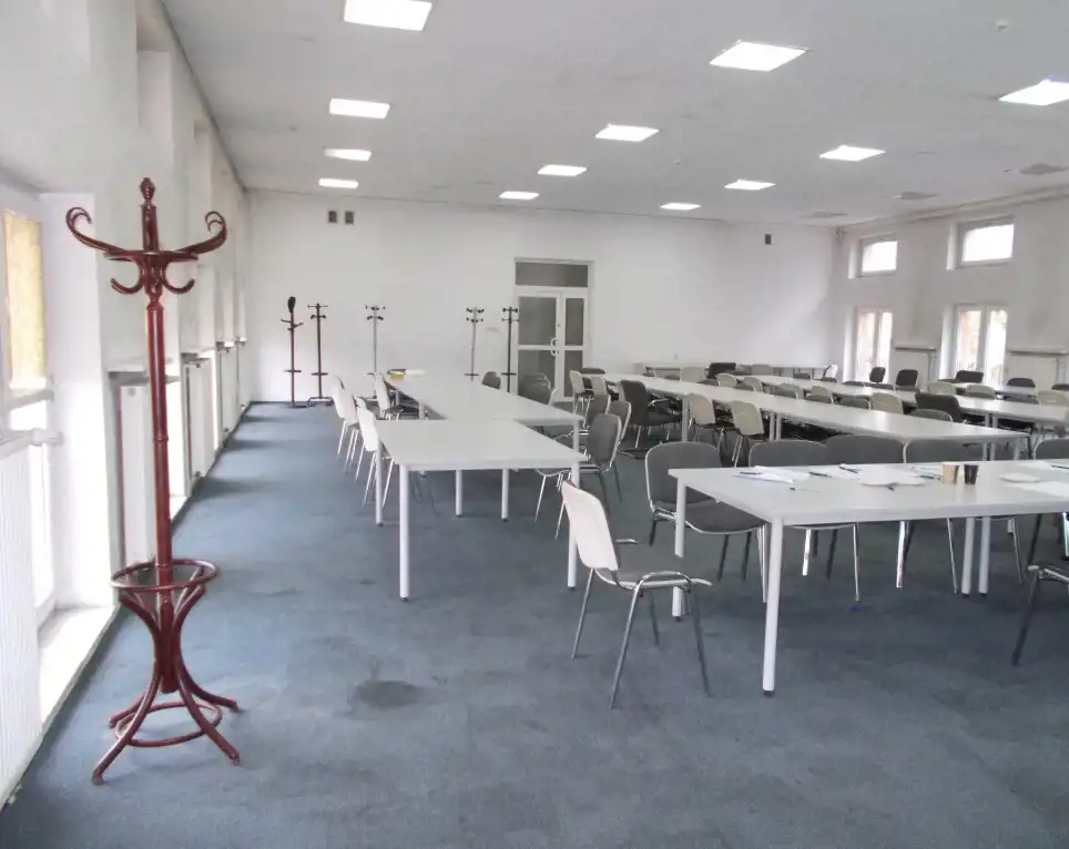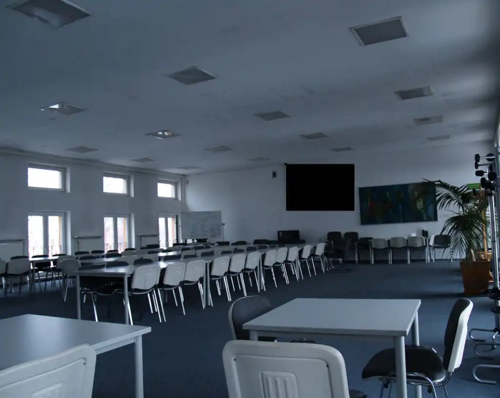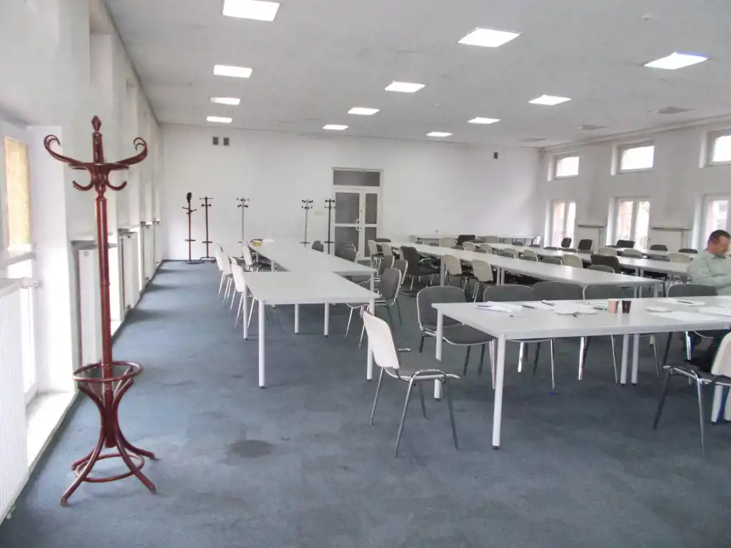 Do wynajęcia duża sala konferencyjna, która znajduje się na pierwszym piętrze budynku położonego przy ulicy Warszawskiej w Łomiankach. Sala ma wymiary 11,45 x 15,5 (177,5m2) i wysokość 3,5 m. Na wyższej kondygnacji jest także pomieszczenie socjalne i sanitarne (wspólne z innymi najemcami) Przed budynkiem jest parking dla gości. Na ogrodzonym i monitorowanym terenie jest duży parking dla najemców. Do ceny najmu należy doliczyć podatek VAT i koszt zużycia prądu.