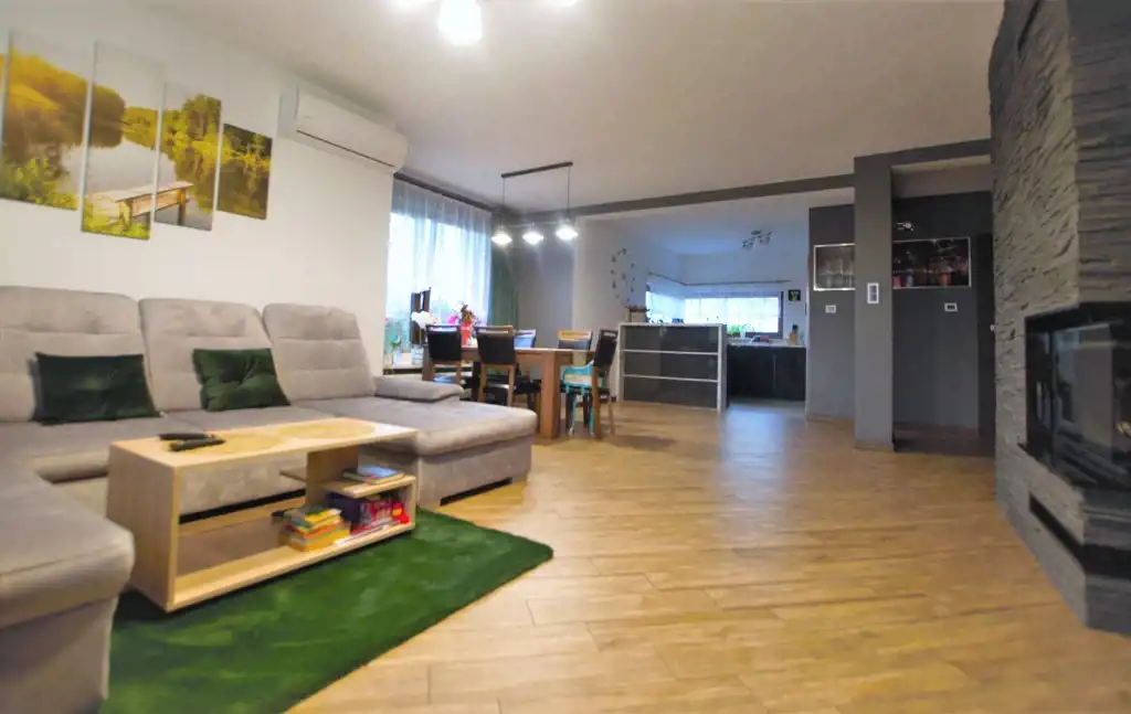 Dom wybudowany został w 2016 roku. Podstawowy materiał budowlany - suporex, ocieplenie - styropian 15 cm, pokrycie dachu - blachodachówka. Budynek ogrzewany piecem na ekogroszek firmy Stalmark. W salonie znajduje się kominek. Dom wyposażony jest w klimatyzację z funkcją ogrzewania. W domu (z wyjątkiem sypialni) rozprowadzone jest ogrzewanie podłogowe.