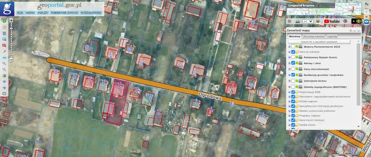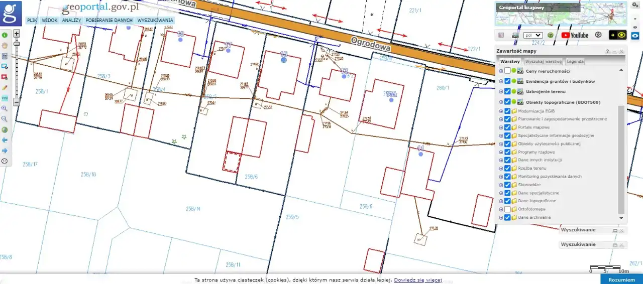 - Działka częściowo zagospodarowana, płaska, prostokąt