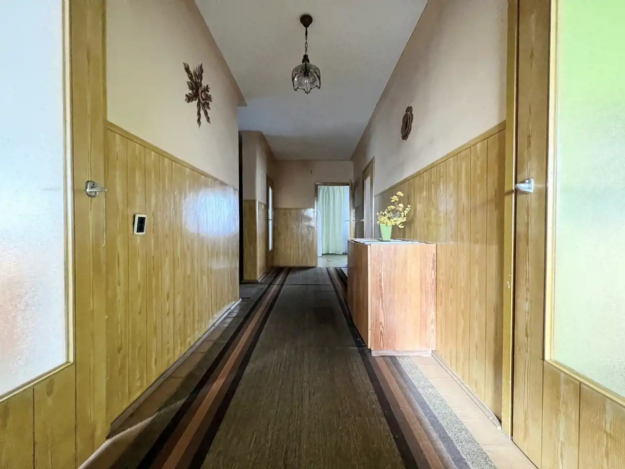 For sale: A house with a usable area of 124.50 sqm (total area approx. 250 sqm), located on a plot of land with an area of 910 sqm in Łopuszno, Kielce County. The building was constructed in the 1980s and is situated in the first line of development. The house is two stories with a basement at the level of the ground floor.