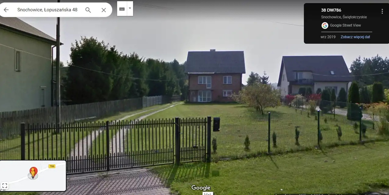 For Sale: Property consisting of a detached house with a living area of 153.5 square meters (total area 211.6 square meters), located on a plot of land with an area of 6000 square meters in Snochowice, Łopuszno municipality. The property also includes a second plot of land (behind the house) with an area of 6000 square meters.
