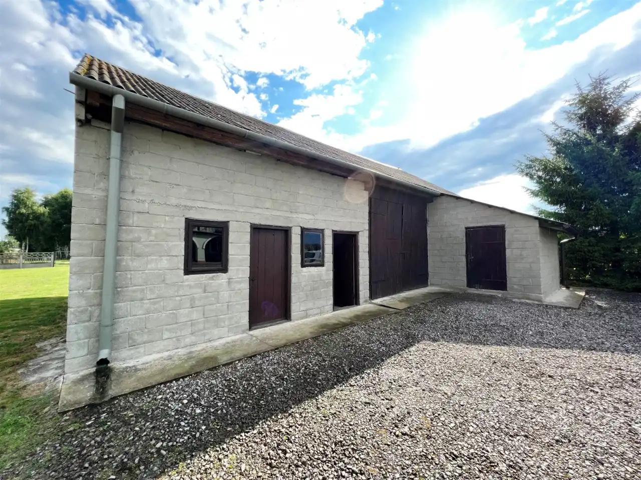 The property is equipped with electricity, water, and sewage systems; however, there is no gas connection. Access is provided by an asphalt road.