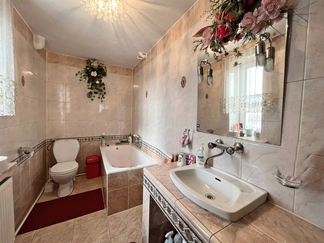 Materiał konstrukcyjny: cegła, dom ocieplony styropianem, tynk sylikatowy. Dach pokryty blachą trapezową. Okna PCV ( na parterze domu antywłamaniowe). Dom po generalnym remoncie ok 5 lat temu.