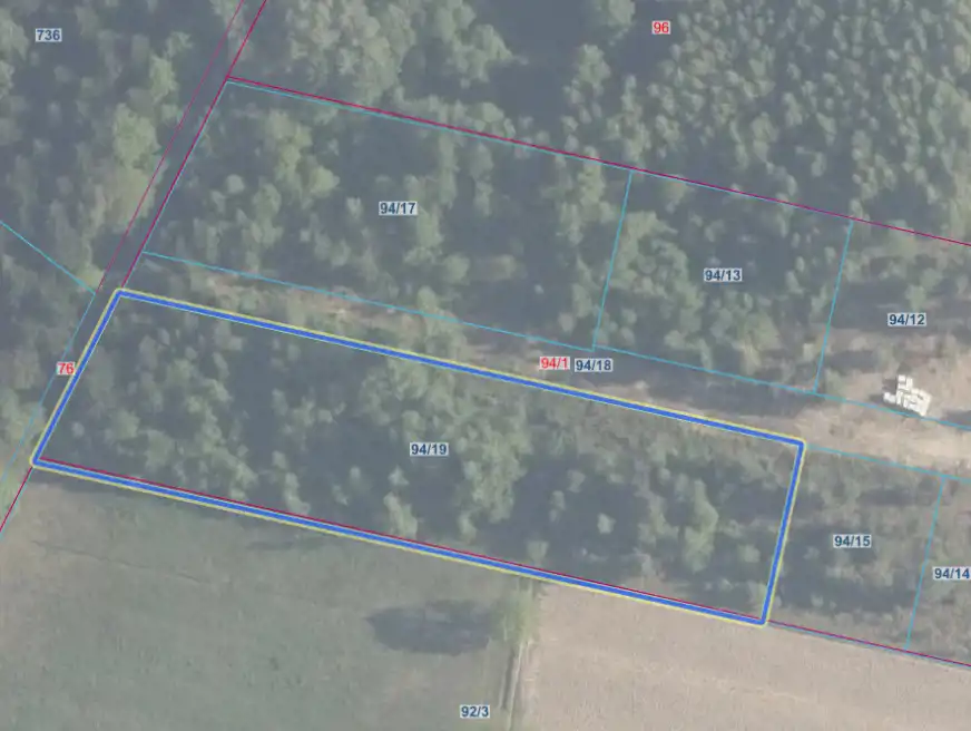 94/19 działka z lasem — ok. 4814 m2 (0.4814 ha)- w trakcie występowania o Wz