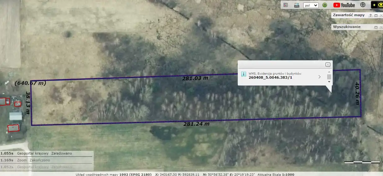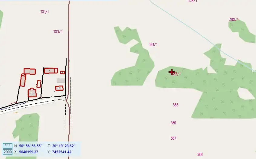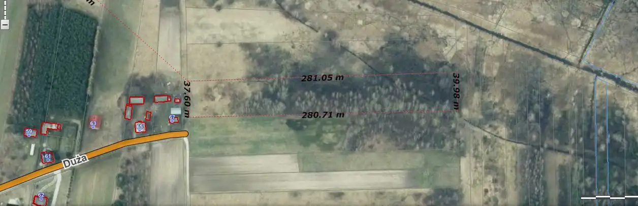 - Działka Niezagospodarowana, częściowo zalesiona, prostokąt