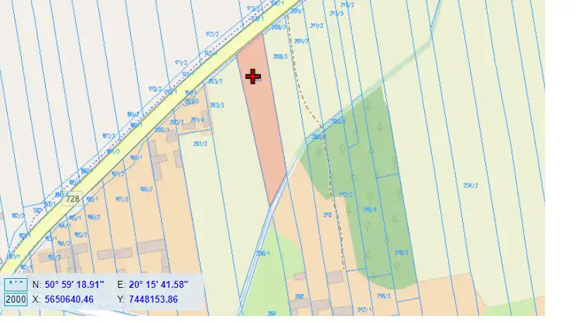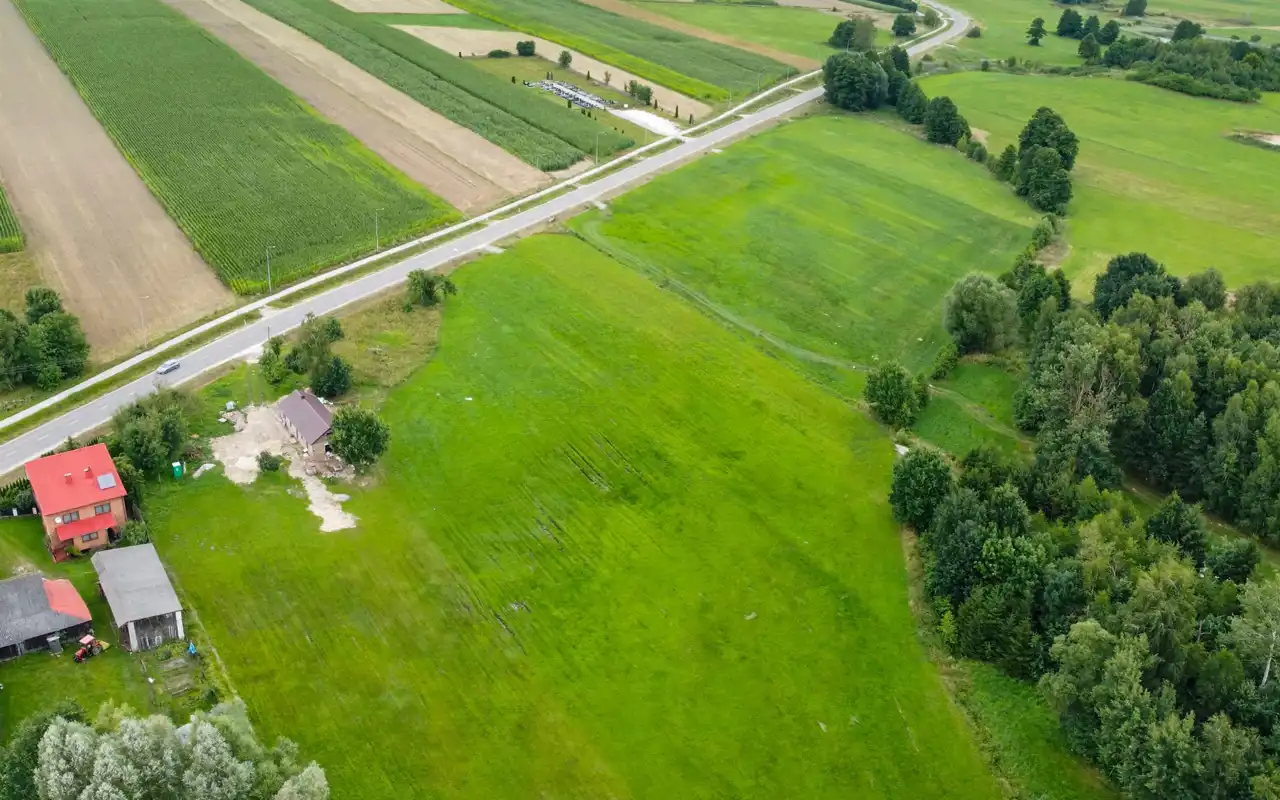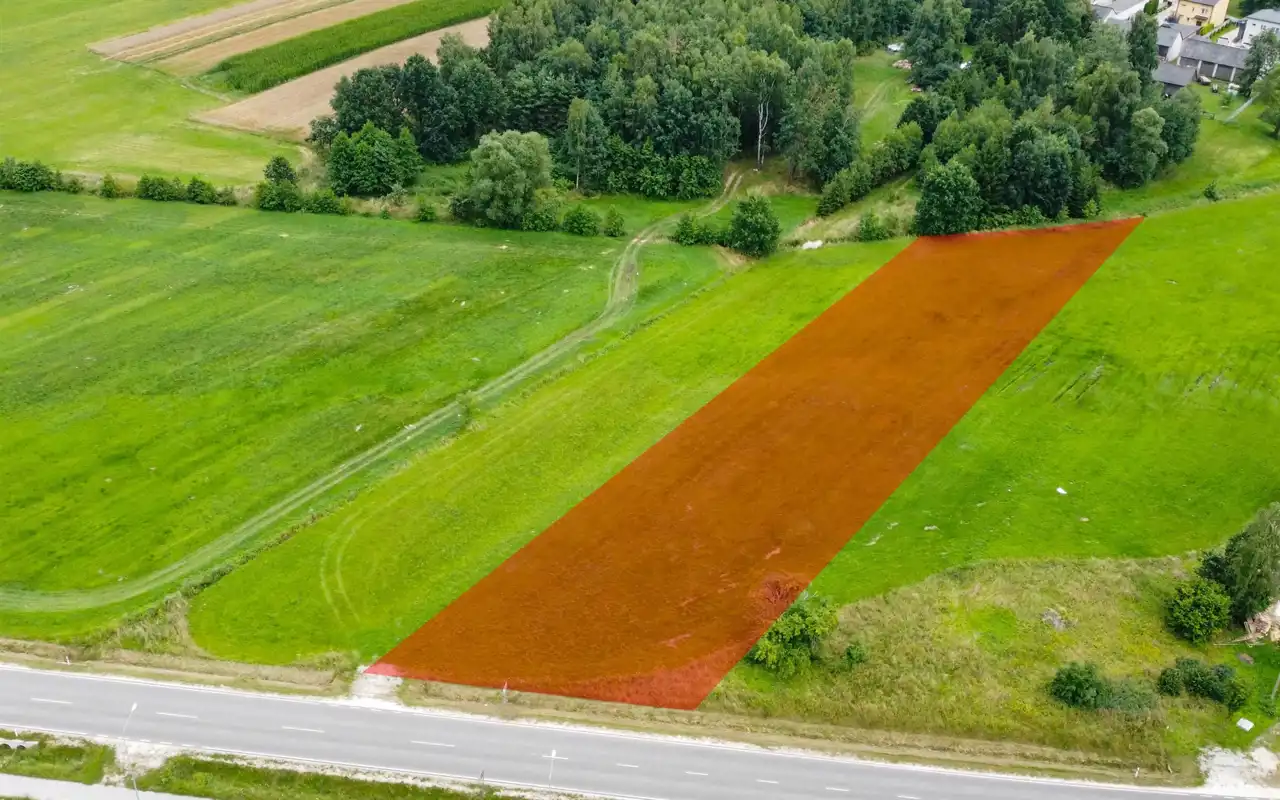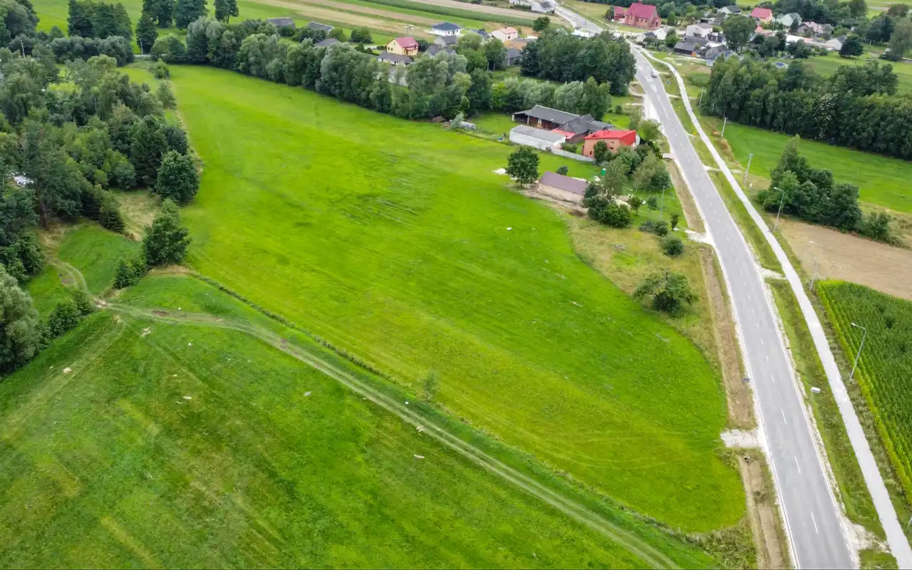 Nieruchomość położona w pierwszej linii od strony drogi, z bezpośrednim dostępem do drogi publicznej, asfaltowej. Działka płaska, w kształcie zbliżonym do prostokąta, niezagospodarowana, częściowo ogrodzona, położona przy drodze wojewódzkiej, daje możliwość zabudowy inwestycyjnej po uzyskaniu Decyzji o Warunkach Zabudowy.