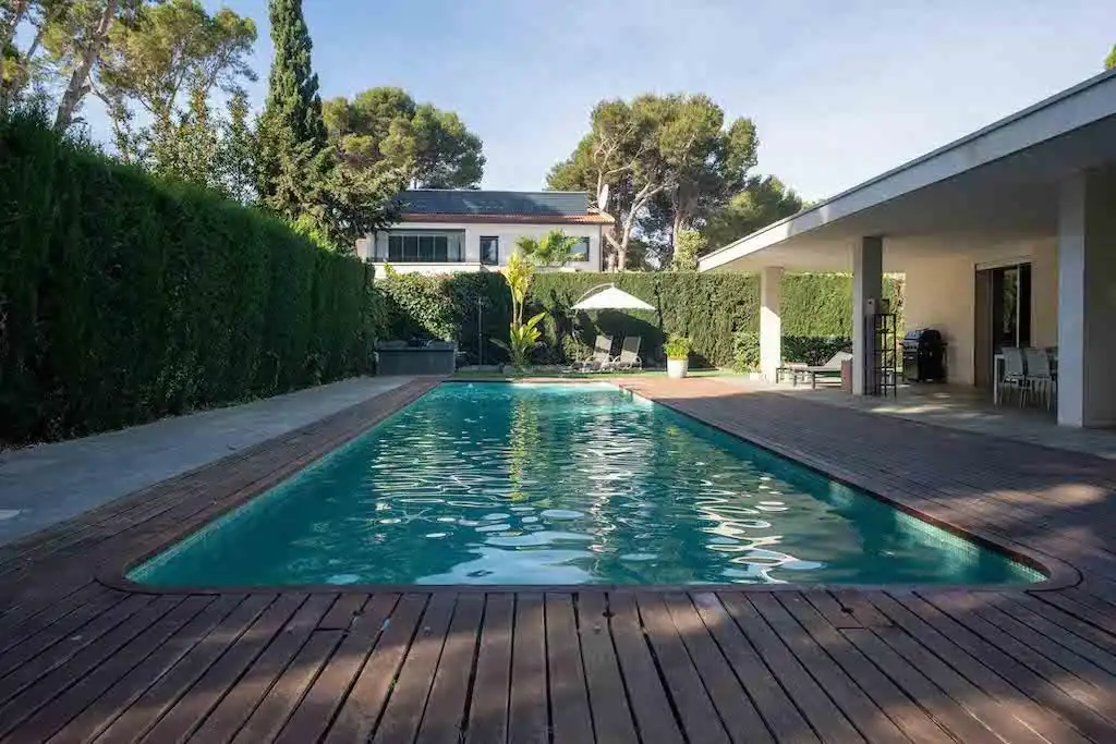 Posiada basen o wymiarach 15x4 m.