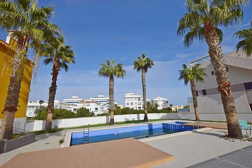Mieszkanie z 3 sypialniami w Villamartín. Ma taras od strony południowej, a także tereny zielone ze wspólnym basenem. Obejmuje prywatne solarium z panoramicznym widokiem i podziemny parking. Kilka minut do restauracji, kawiarni, supermarketów, transportu publicznego i innych usług. 15 minut spacerem do centrum handlowego Zenia Boulevard, klubu golfowego i pola golfowego Villamartín oraz Plaza de Villamartín. 5 minut samochodem do zatoczek i plaż Cabo Roig, La Zenia i Playa Flamenca oraz do pól golfowych Ramblas, Campoamor Golf i Colinas.