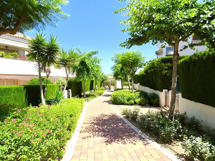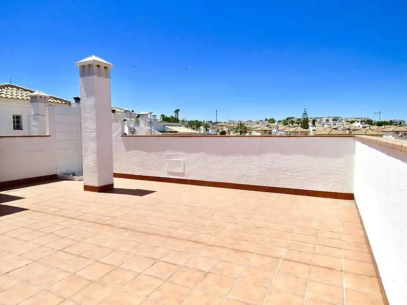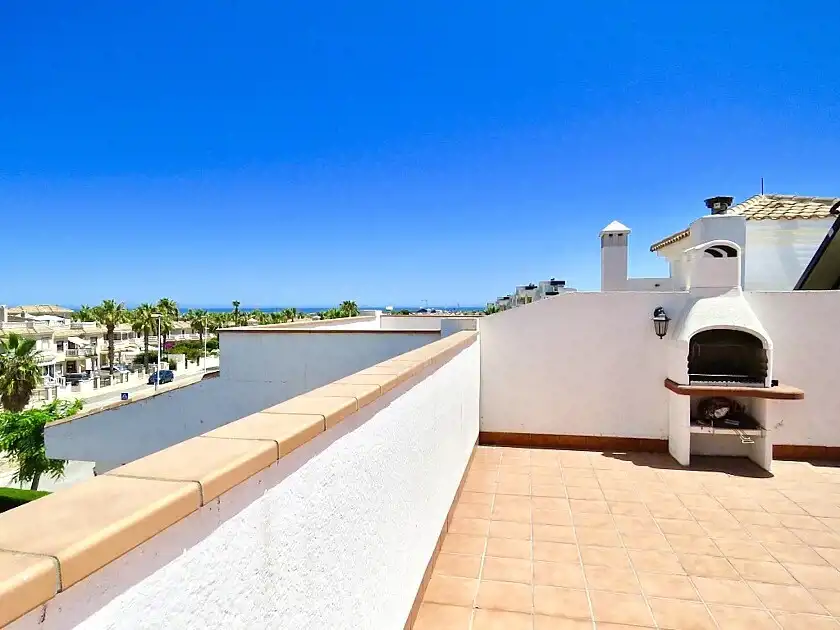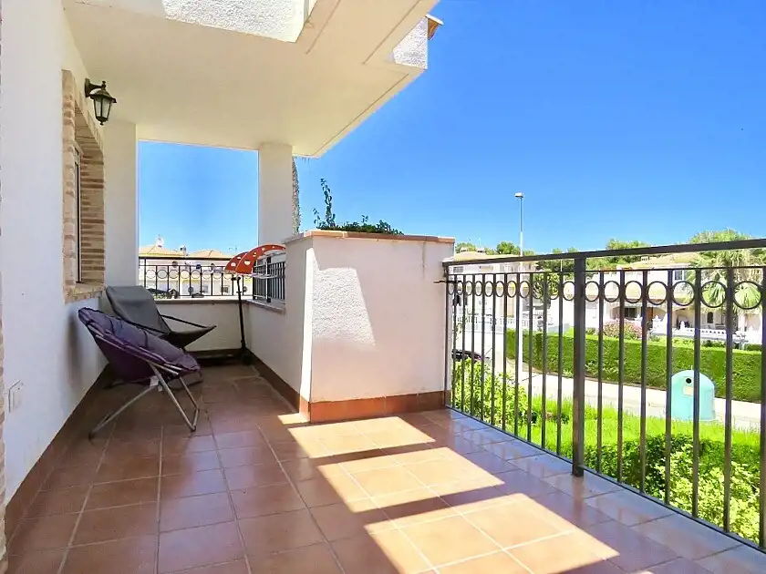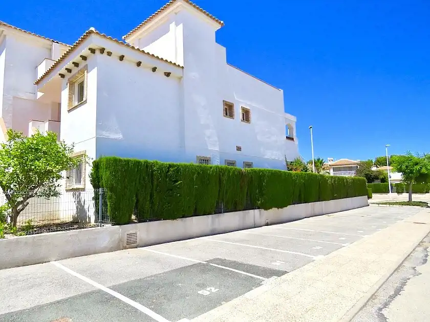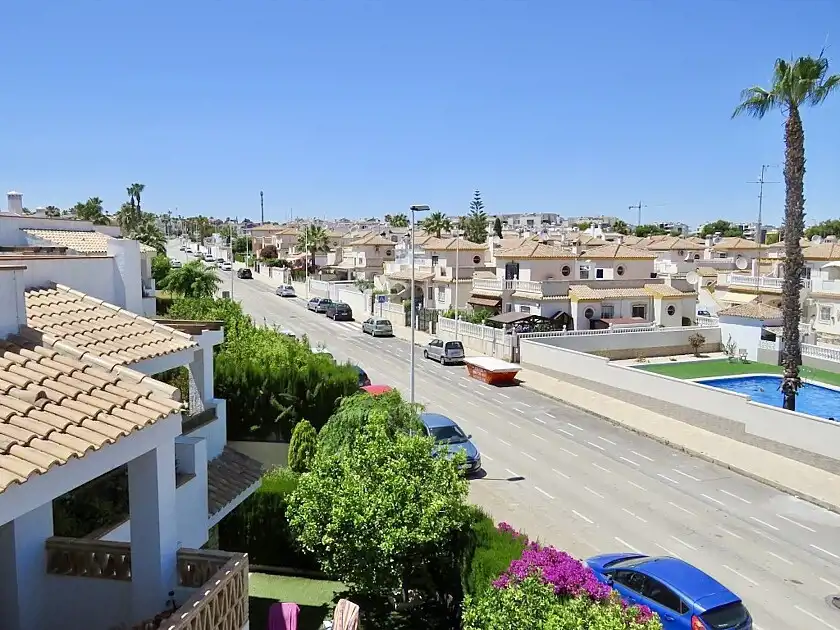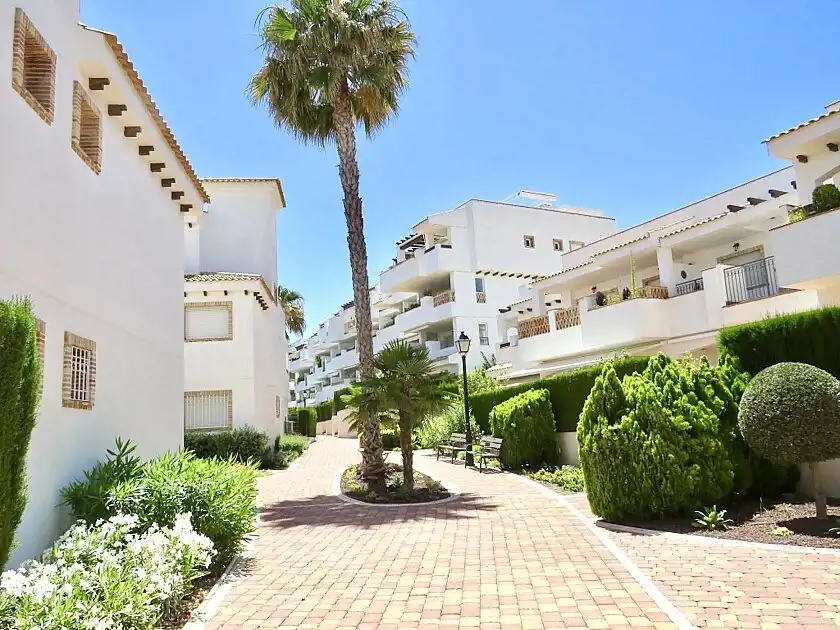 Bungalow na piętrze z 2 sypialniami i 2 łazienkami, z dużym salonem z otwartą kuchnią, tarasem, galerią i dużym solarium z widokiem na morze i okolicę. Mieszkanie jest w doskonałym stanie, w pełni umeblowane i wyposażone w sprzęt AGD. Urbanizacja cieszy się terenami zielonymi z parkingiem i basenem społecznościowym. Odległość do najbliższej plaży wynosi 2,6 km. Kilka minut spacerem od centrum handlowego, sklepów, barów, restauracji i innych obiektów użyteczności publicznej, kilka minut od centrum handlowego Zenia Bulevard, klubu golfowego Villamartin i Plaza de Villamartín, trzech innych pól golfowych i szkoły Międzynarodowy zespół El Limonar. Jest to doskonała opcja do zamieszkania przez cały rok.