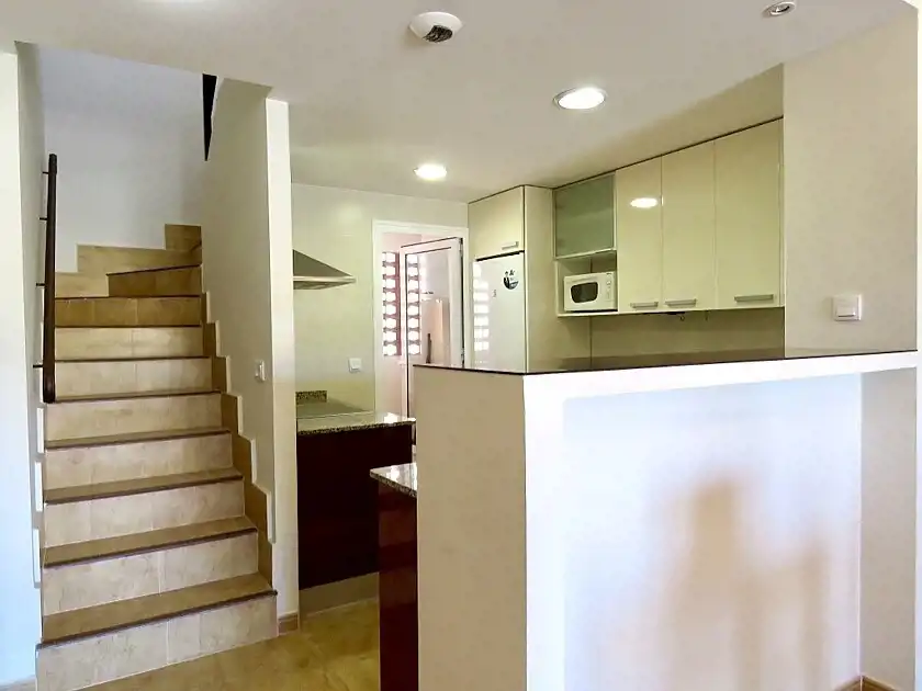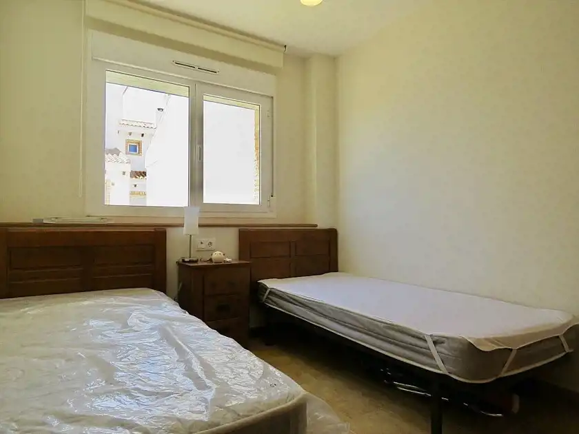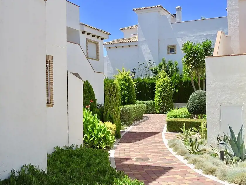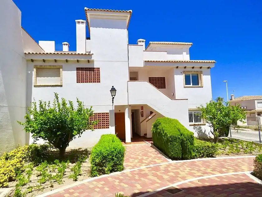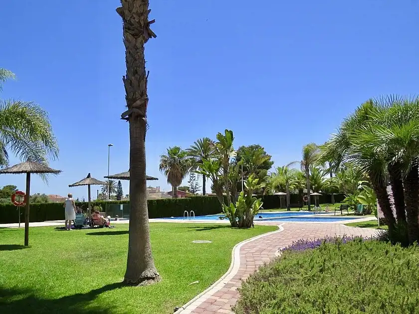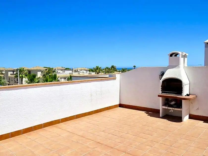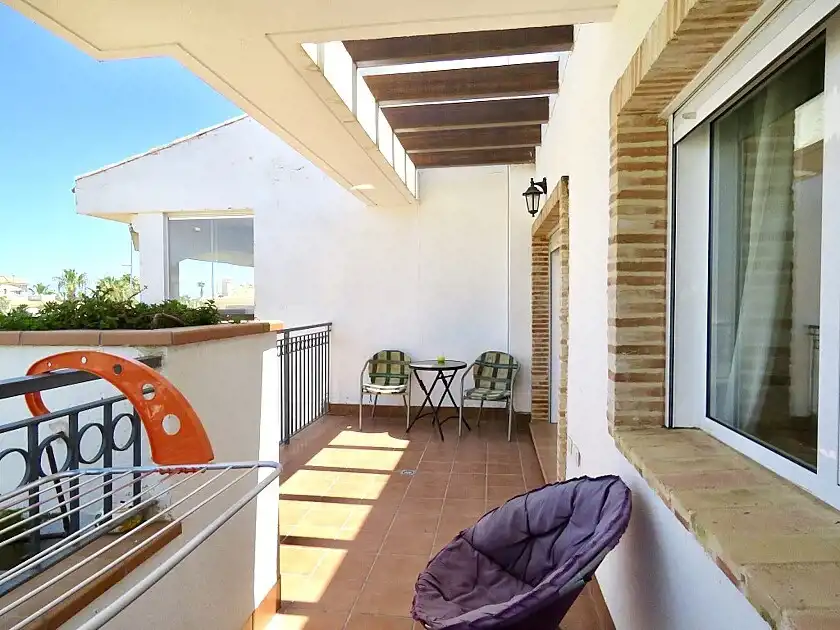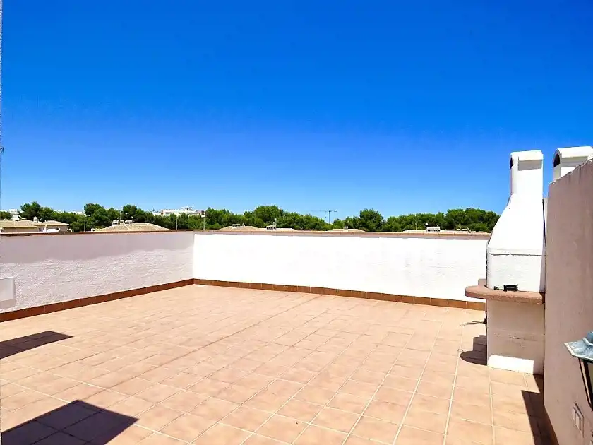 Bungalow na piętrze z 2 sypialniami i 2 łazienkami, z dużym salonem z otwartą kuchnią, tarasem, galerią i dużym solarium z widokiem na morze i okolicę. Mieszkanie jest w doskonałym stanie, w pełni umeblowane i wyposażone w sprzęt AGD. Urbanizacja cieszy się terenami zielonymi z parkingiem i basenem społecznościowym. Odległość do najbliższej plaży wynosi 2,6 km. Kilka minut spacerem od centrum handlowego, sklepów, barów, restauracji i innych obiektów użyteczności publicznej, kilka minut od centrum handlowego Zenia Bulevard, klubu golfowego Villamartin i Plaza de Villamartín, trzech innych pól golfowych i szkoły Międzynarodowy zespół El Limonar. Jest to doskonała opcja do zamieszkania przez cały rok.