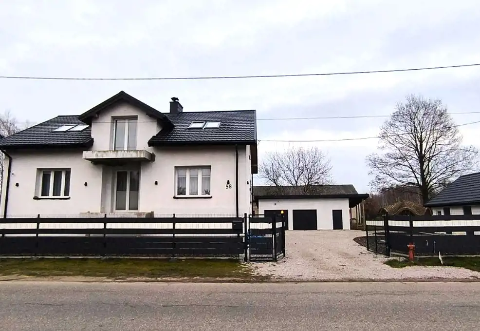 Garaż – dwustanowiskowy z dodatkowym pomieszczeniem przeznaczonym na warsztat o powierzchni całkowitej około 50 m2, z jednym wjazdem przelotowym , z automatycznymi wrotami wjazdowymi sterowanymi z pozycji pilota z oddzielnym alarmem i monitoringiem. Garaż w całości z nową elektryką, otynkowany, nowe poszycie dachu (blachodachówka) wykończony podbitką