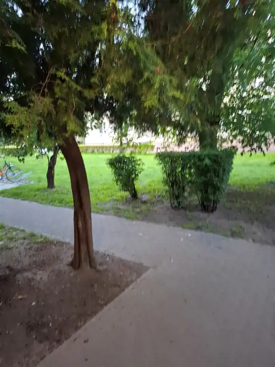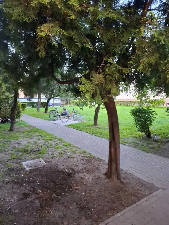 Wokół bloku dużo zieleni, cała przestrzeń bardzo zadbana.