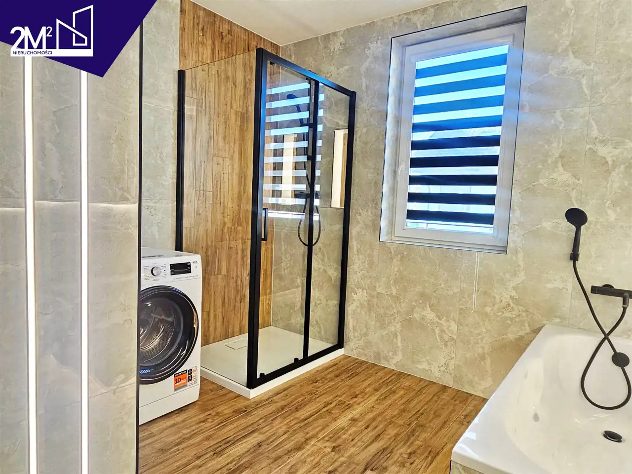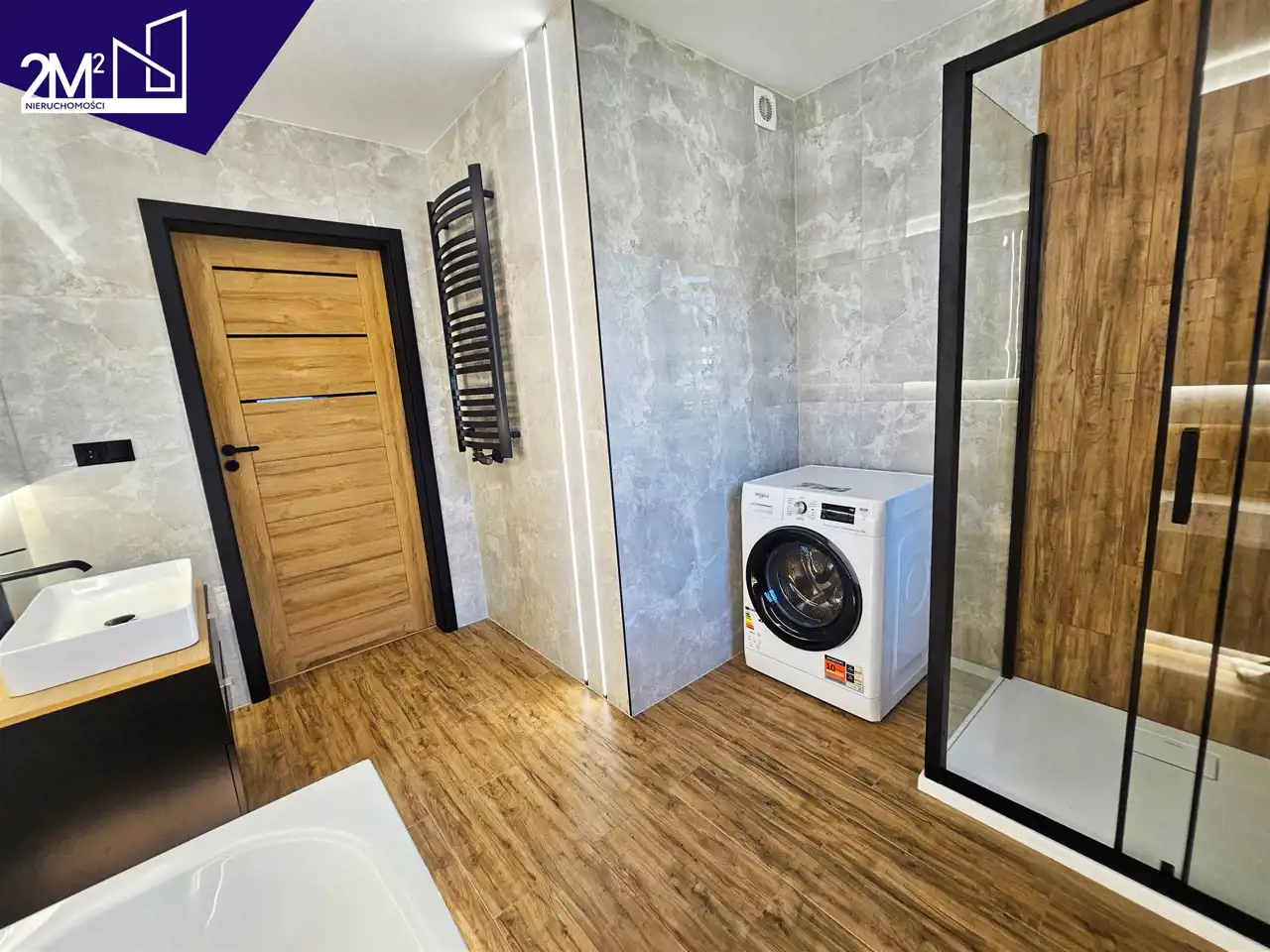 Ogrzewanie podłogowe w całym budynku oraz drabinka w łazience.