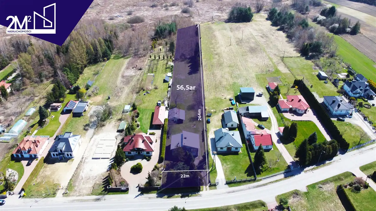 Nieruchomość położona jest na działce o powierzchni aż 56,5 ar, z ogromnym potencjałem na rozbudowę, ogród, strefę relaksu czy przydomowy sad.