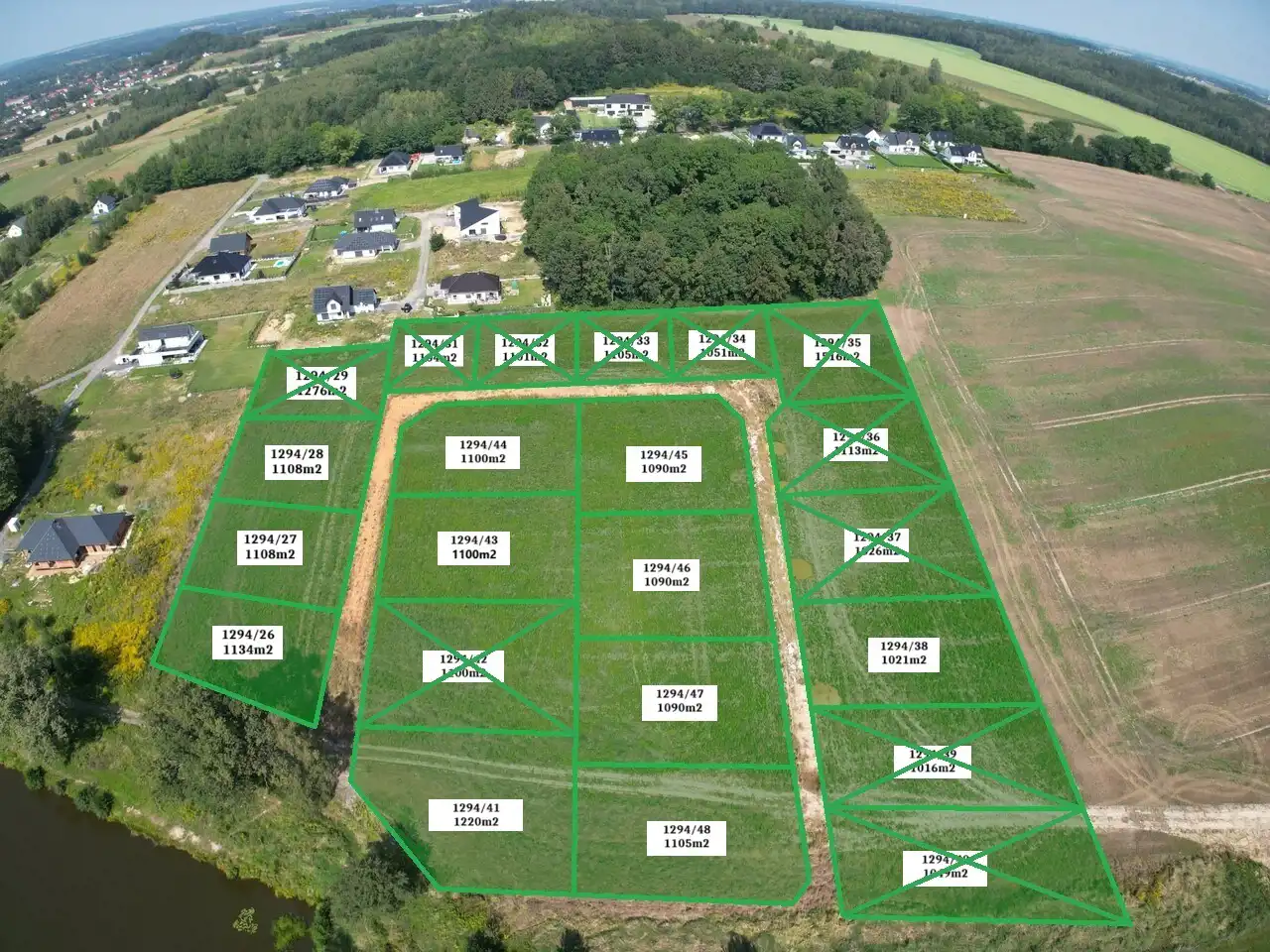 Oferta dotyczy działki o numerze 1294/44 i powierzchni 1100 m².