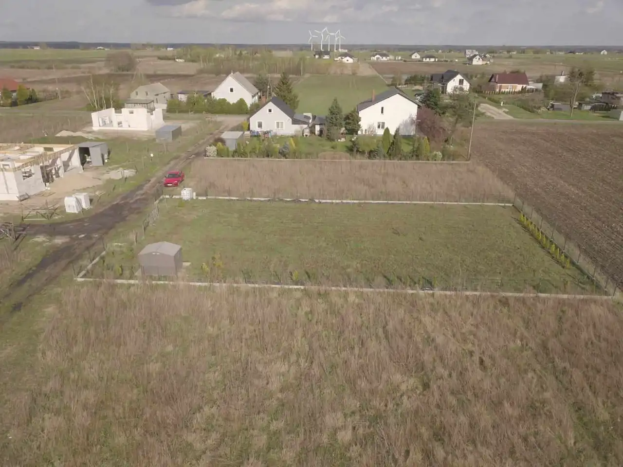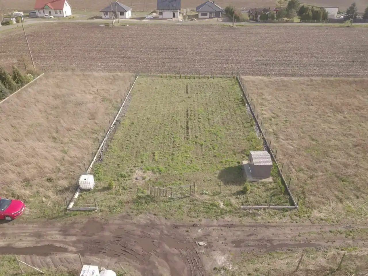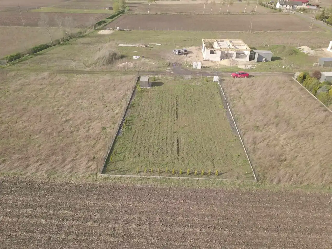 - Media Woda: na działce; Prąd: na działce