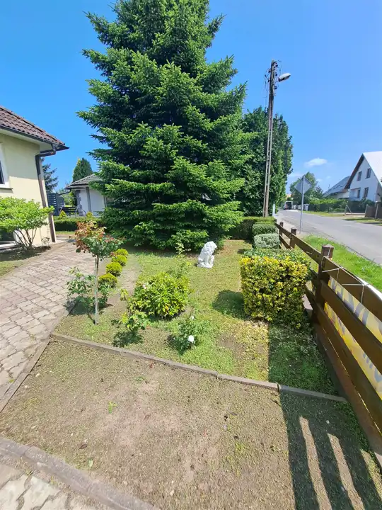 Działka o powierzchni 980 m² jest w pełni ogrodzona i zagospodarowana. Znajduje się na niej dom jednorodzinny z 2003 roku o powierzchni użytkowej 166,10 m² (całkowita: 257,10 m²) oraz budynek garażowo-gospodarczy, który może służyć jako miejsce do przechowywania, warsztat lub przestrzeń do realizacji własnych pomysłów.