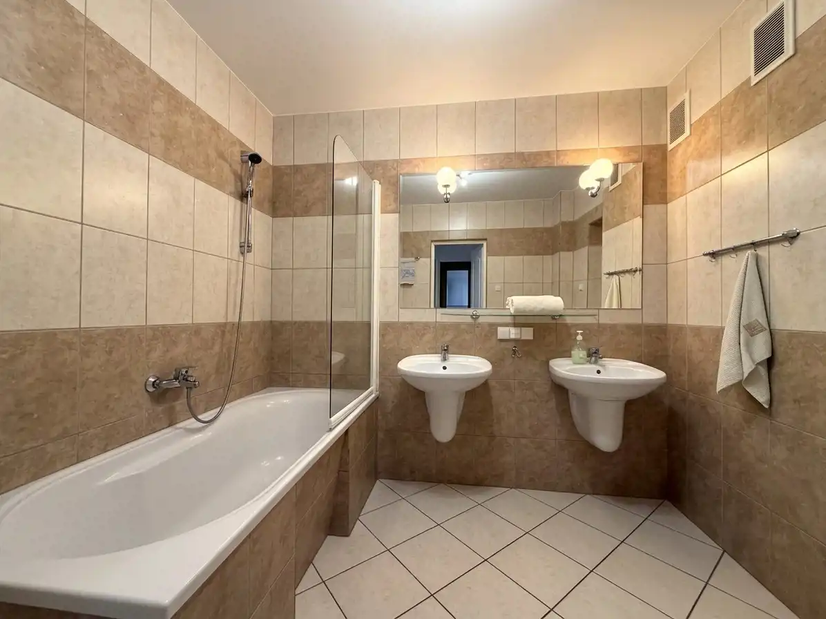 2 duże łazienki – każda z wanną i WC, w jednej dodatkowo prysznic