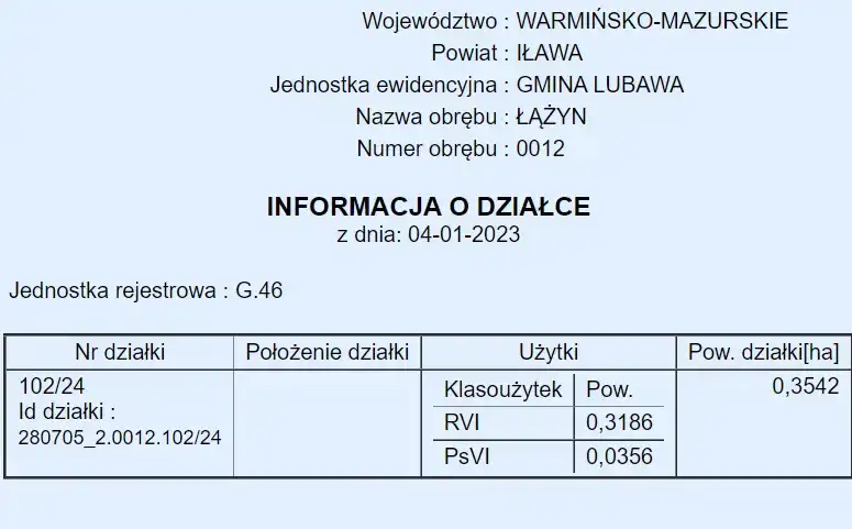 Zapraszamy do zakupu 7 działek rolnych znajdujących się w miejscowości Łążyn, w Gminie Lubawa w powiecie Iławskim.