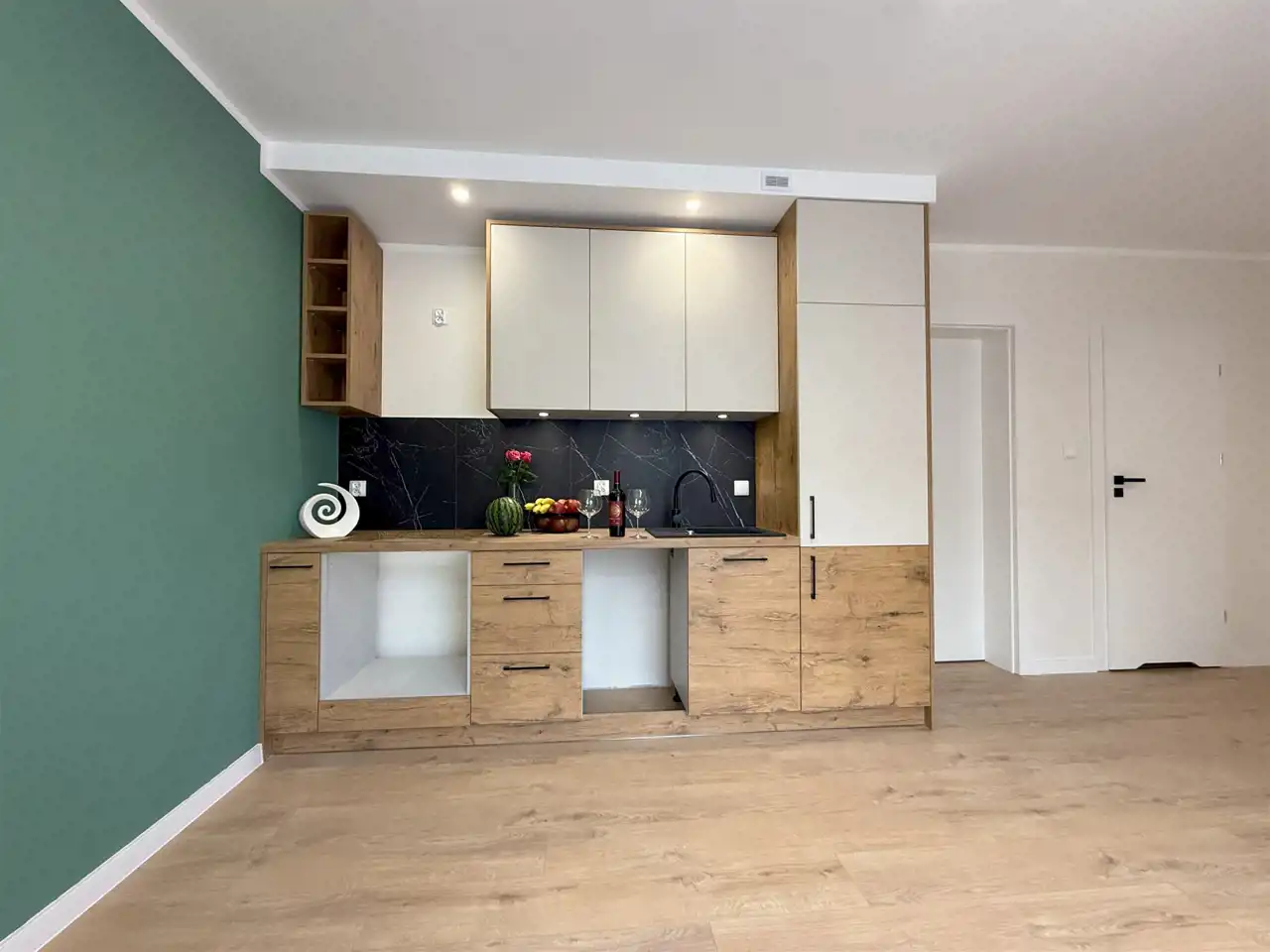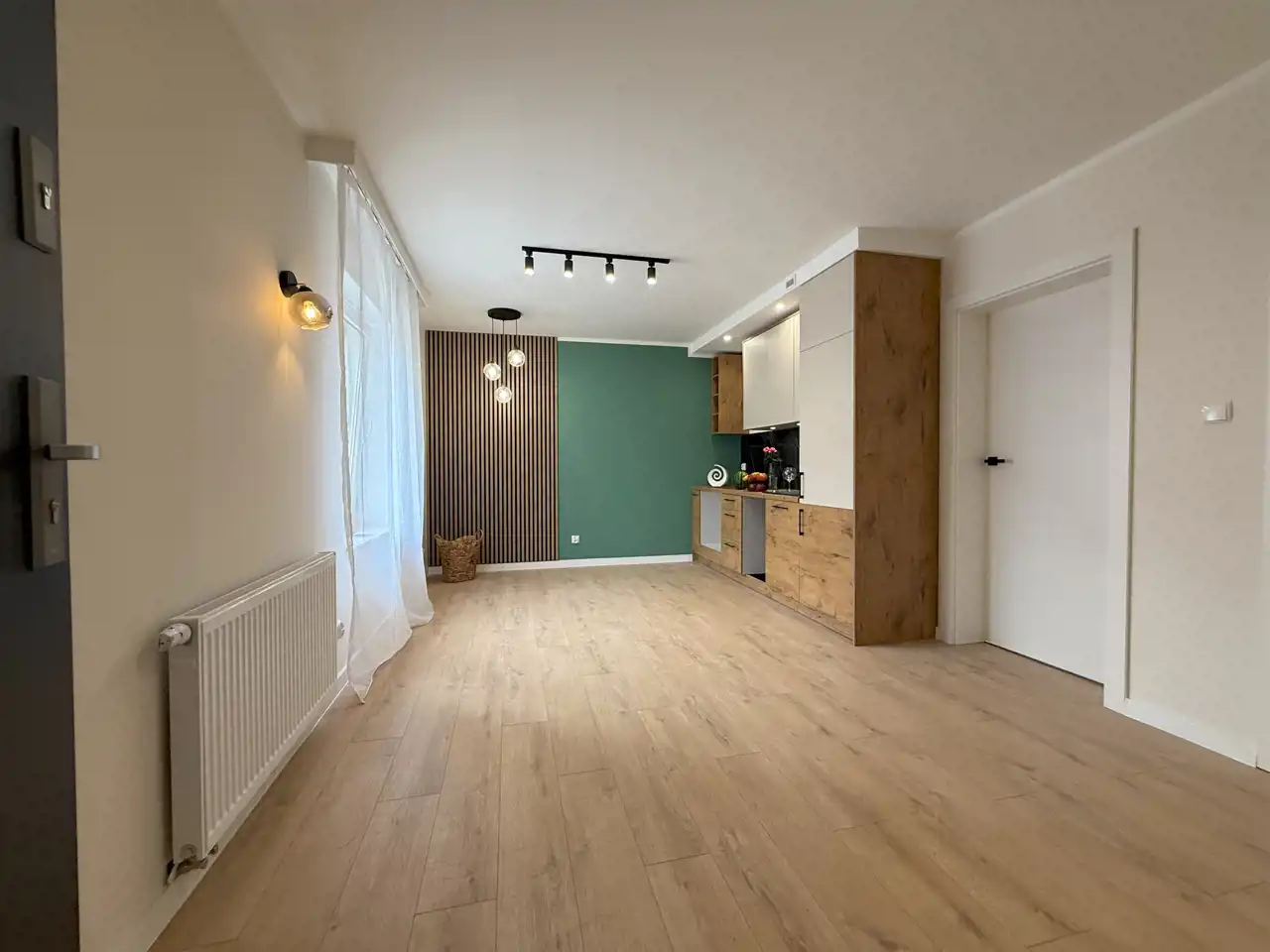 Wnętrze składa się z jasnego salonu z aneksem kuchennym, oddzielnej sypialni oraz nowoczesnej łazienki. Całość po generalnym remoncie – wymieniono instalacje elektryczne, wodno-kanalizacyjne i grzewcze. Lokal jest gotowy do zamieszkania od razu, bez dodatkowych inwestycji.