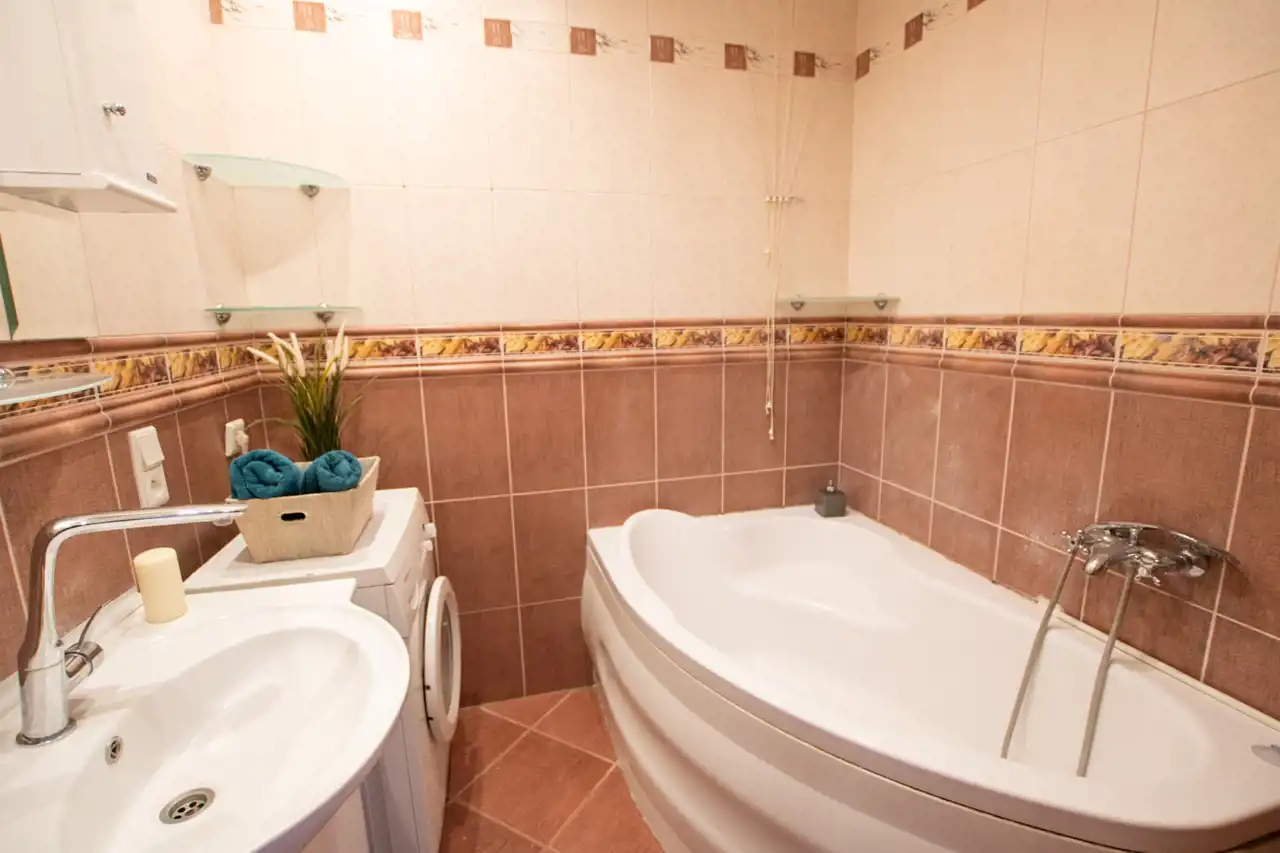 -Łazienka: Umywalka,miejsce do przechowywania,wanna,pralka