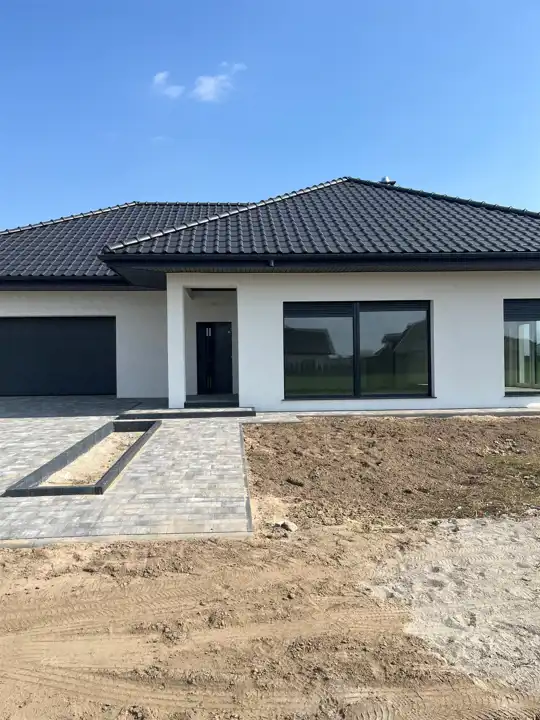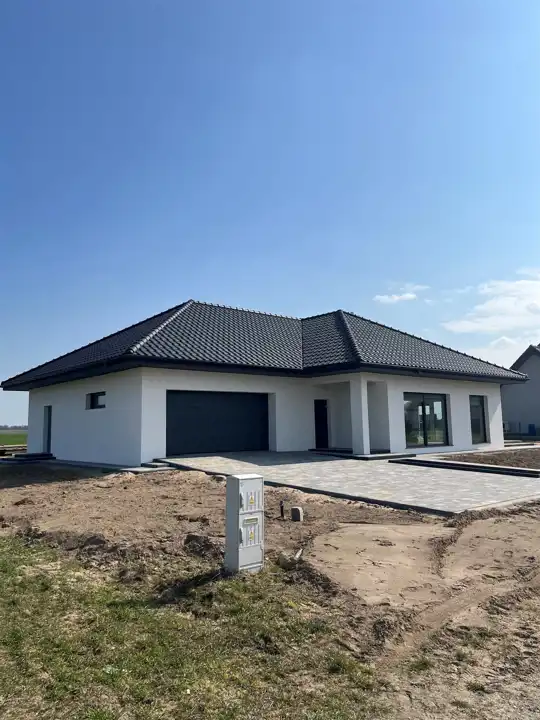 Nowoczesny dom parterowy z 2 stanowiskowym garażem – Łubianka, ul. Ziołowa