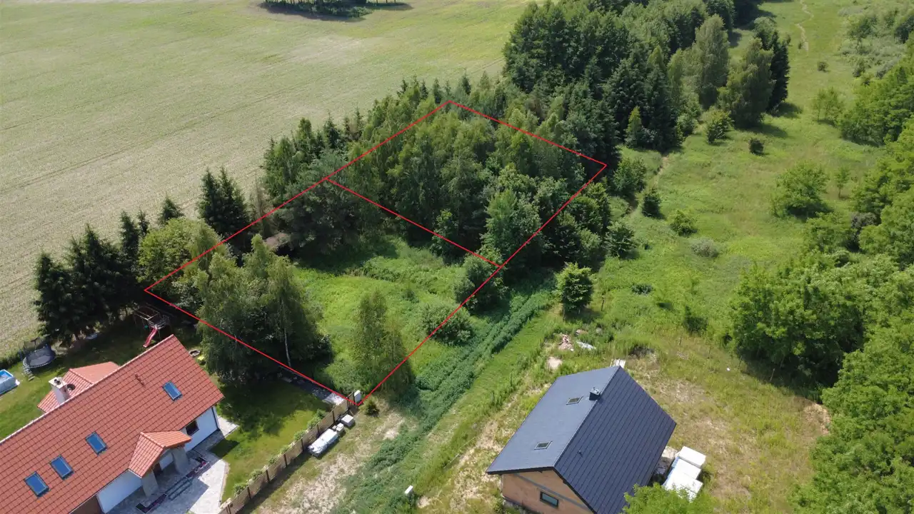 W bezpośrednim sąsiedztwie znajdują się już zabudowania jednorodzinne (widoczne na zdjęciach), co świadczy o ustabilizowanym charakterze okolicy, jednocześnie zachowującym prywatność dzięki dużej powierzchni oferowanej działki.